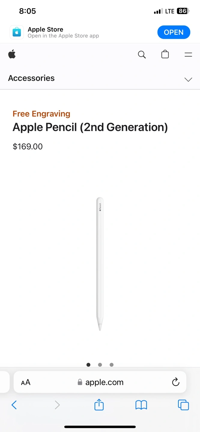 Apple Pencil (2nd generation). Magnetically attaches and pairs. Compatible with select iPad models. Includes box