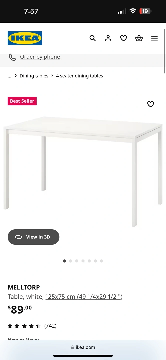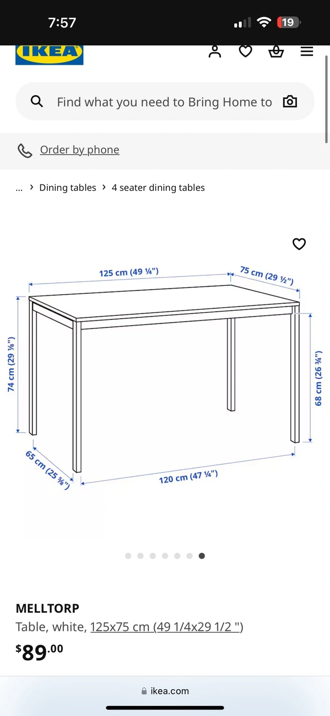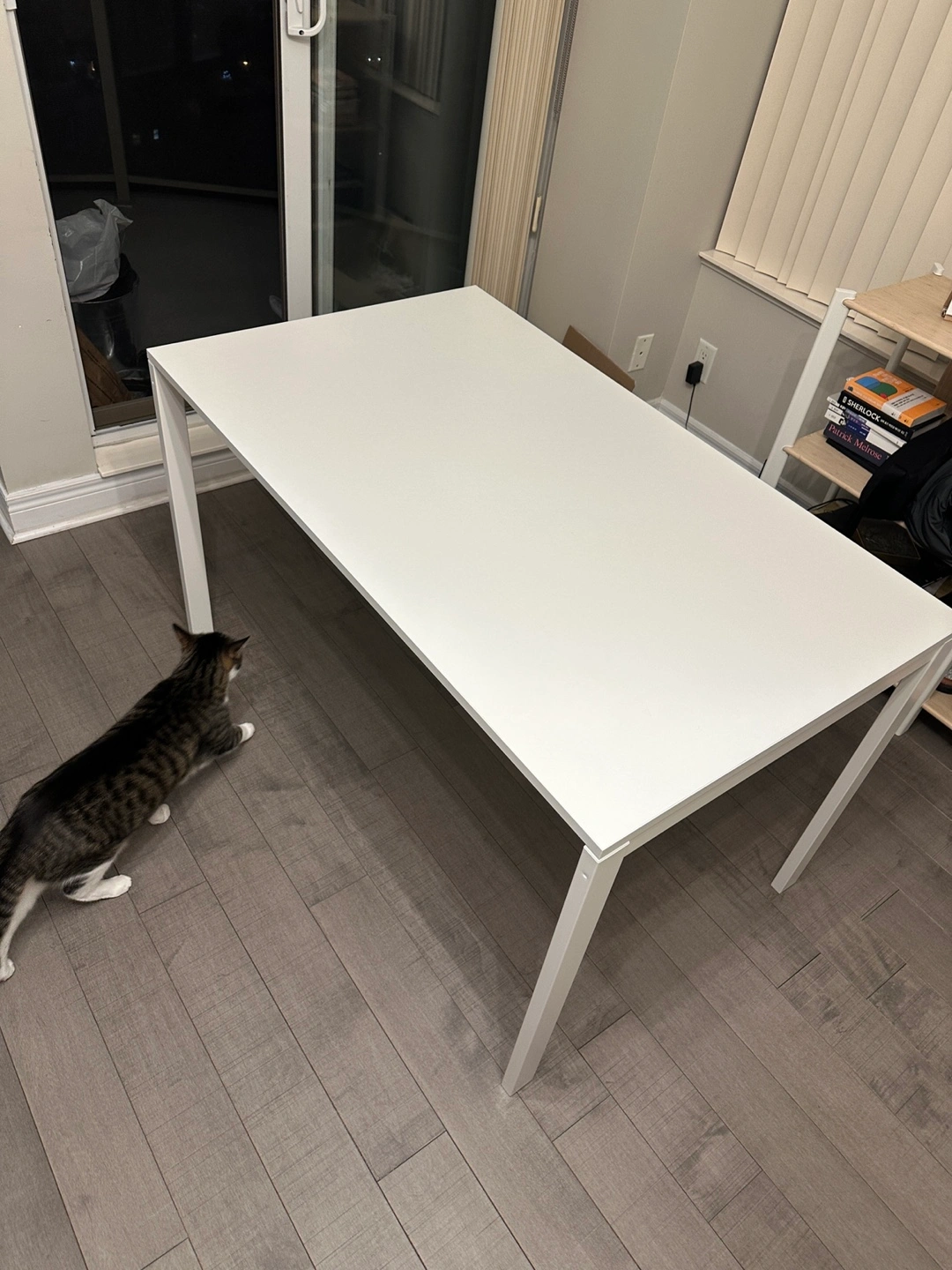 White rectangular dining table. Simple design. Minimalist style. Great for small spaces. Measures 125x75 cm (49 1/4x29 1/2").