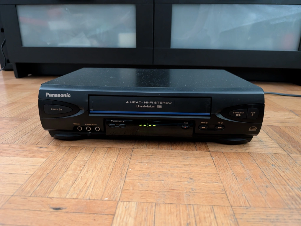 Vintage Panasonic VCR. Four-head Hi-Fi stereo. Plays and records VHS tapes. Good working order. Includes power cable