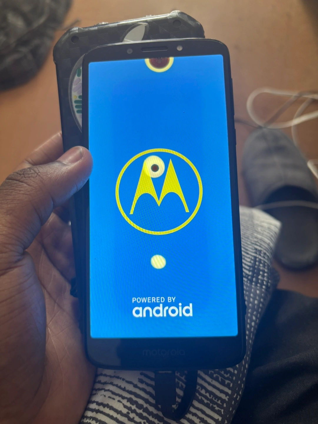 A Motorola MOTO G7 with 16gb of storage, it uses to be my old trap phone so that is a few wears and tears on the screen but it still works well.