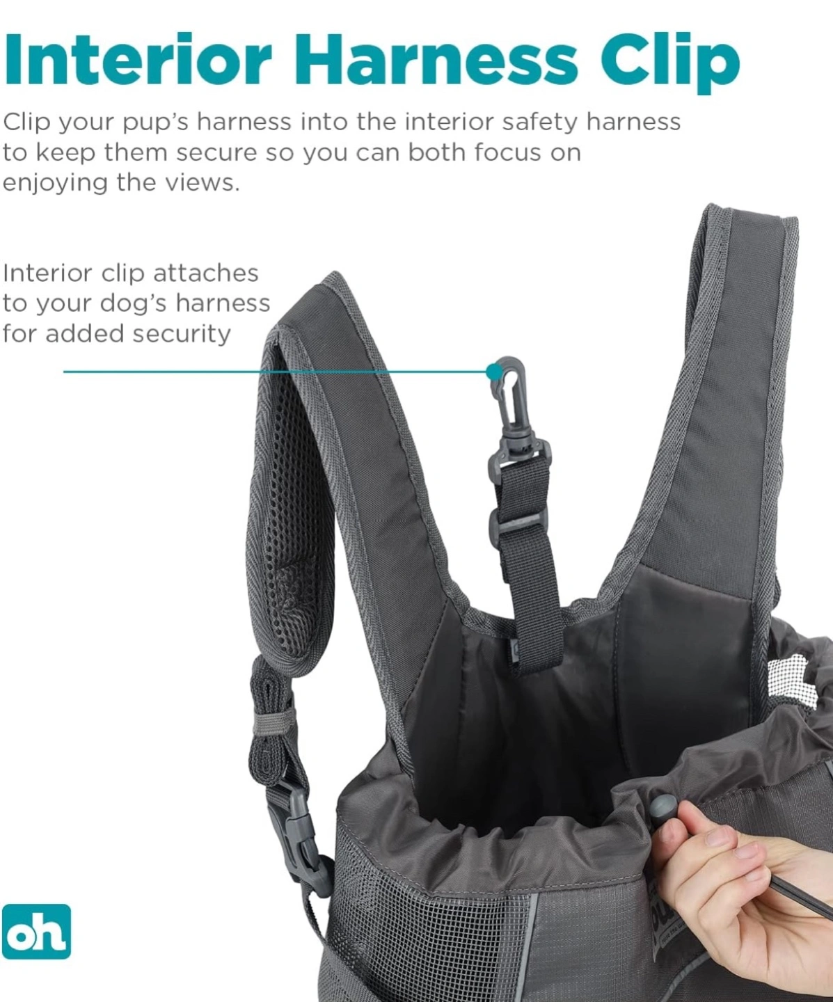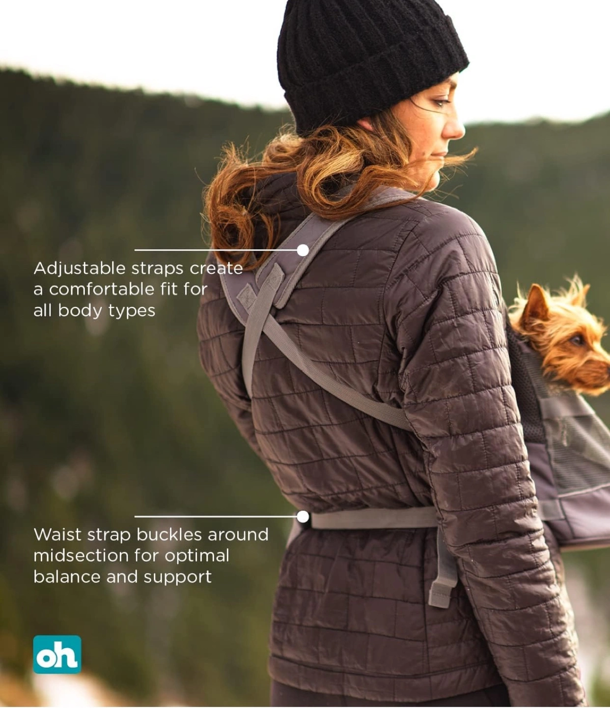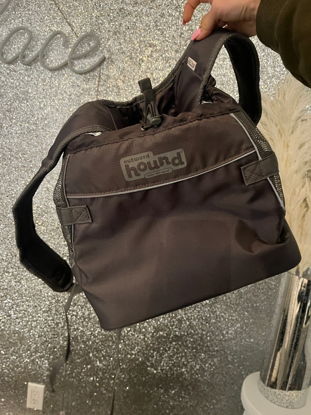 All the pictures should answer any questions but please let me know if you have any more. 30L x 23W x 36H cm - Polyester - item weight: 1.25lbs - Padded shoulder straps and adjustable buckles provide a supportive, hands-free fit for all body types. Be sure to cross the straps in the back before enjoying a hands-free adventure with your pup.