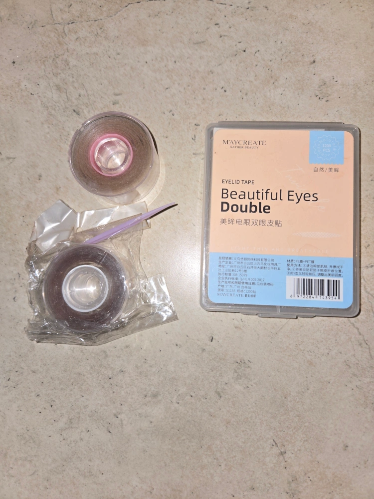 Two different rolls of double eyelid tape (one still sealed with tool) plus Maycreate Beatiful Eyes Double Eyelid Tape with applicator tools. New, unused. I can also throw in some extra loose sheets for free if you want!