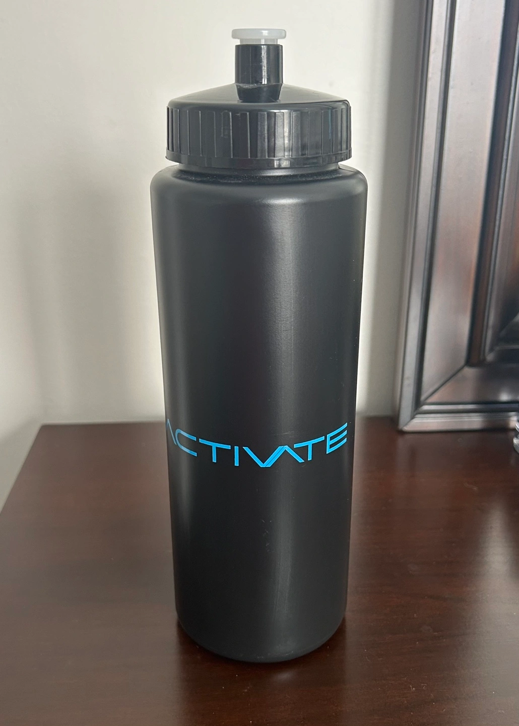 Black plastic water bottle