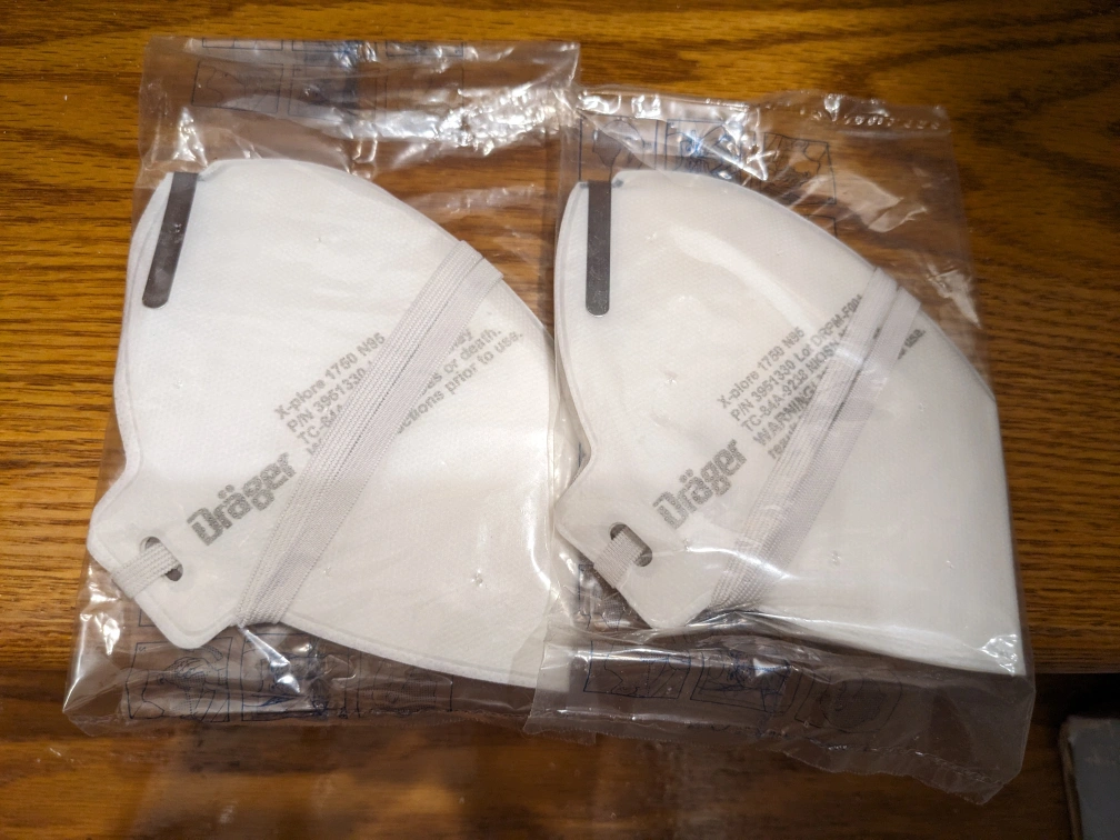 New Drager X-plore 1750 N95 respirators. Individually packaged. Read instructions before use.