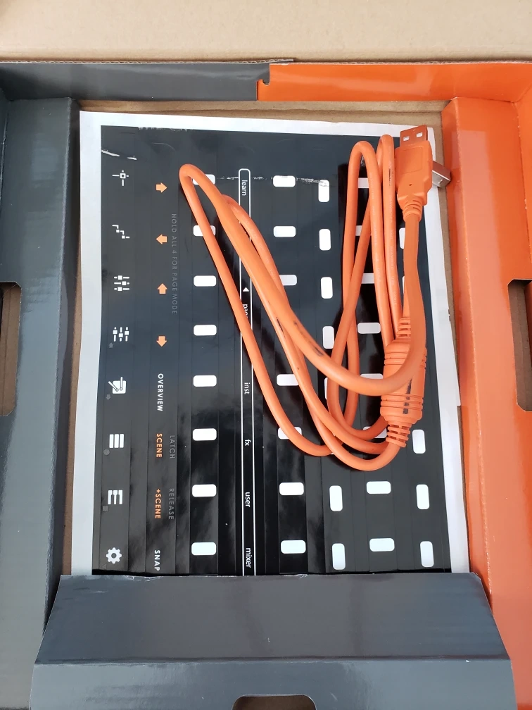 Like new, hardly used. Compact MIDI controller. Works with Ableton Live. Includes USB cable and instructions. Great for music production.