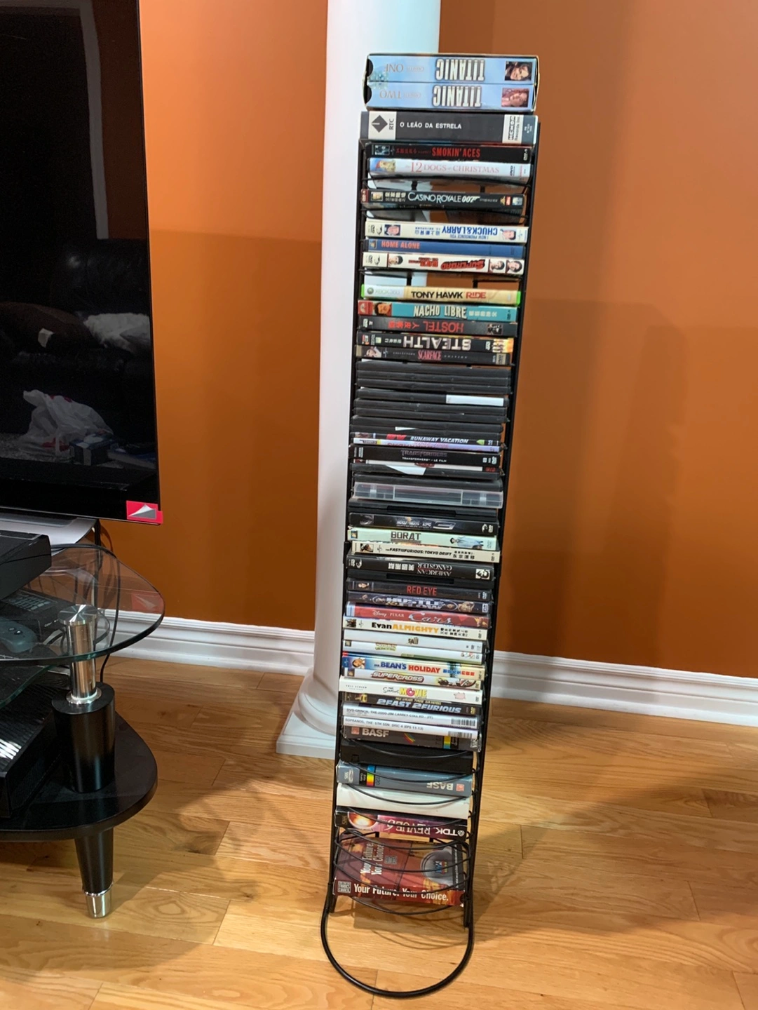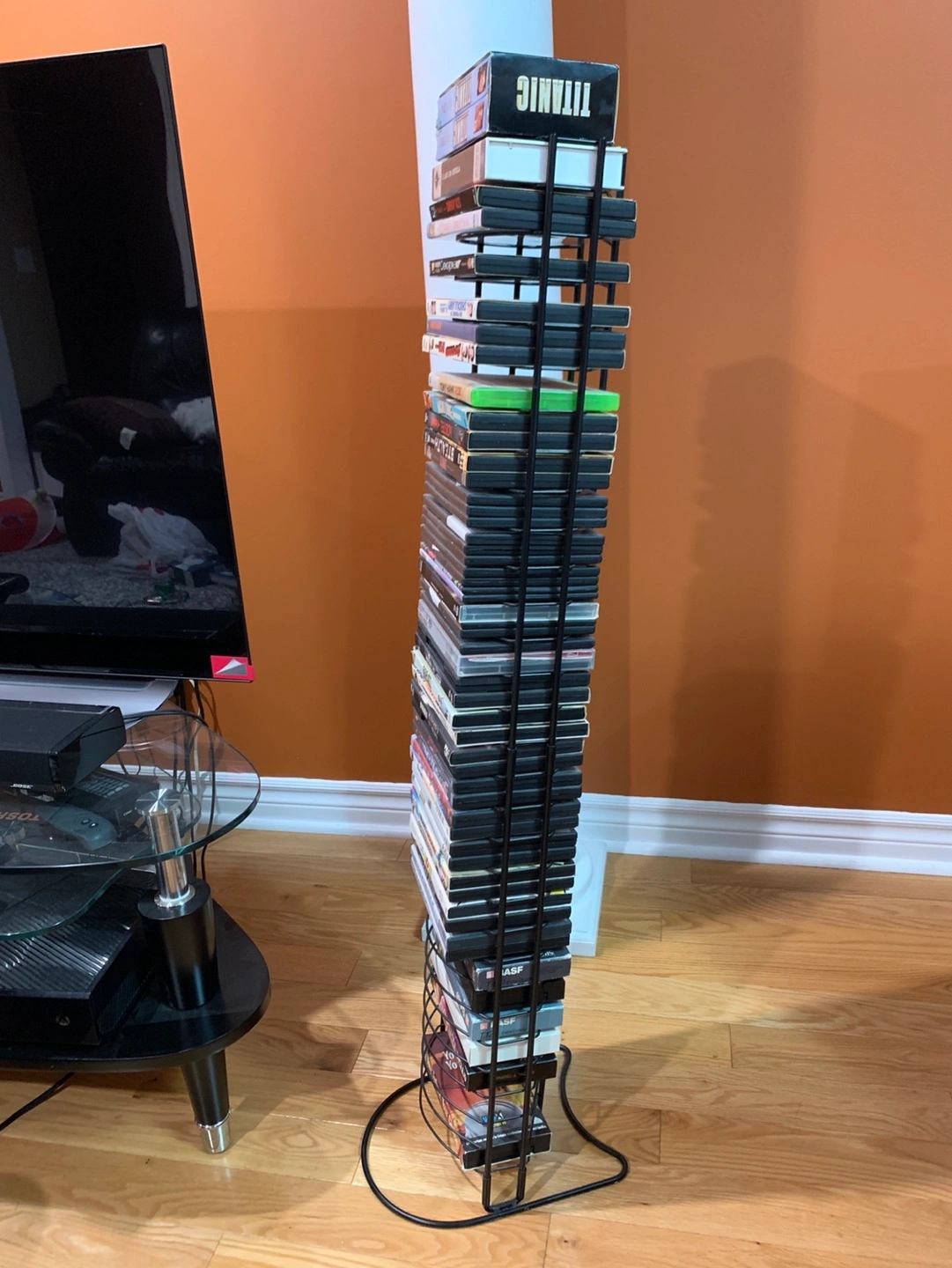 I’m selling this VHS tape stand, that also works for DVD’s as well or both. It’s made of 3 piece metal and is very sturdy.