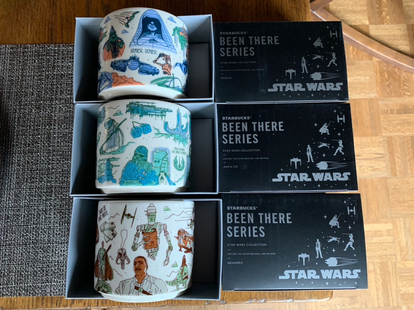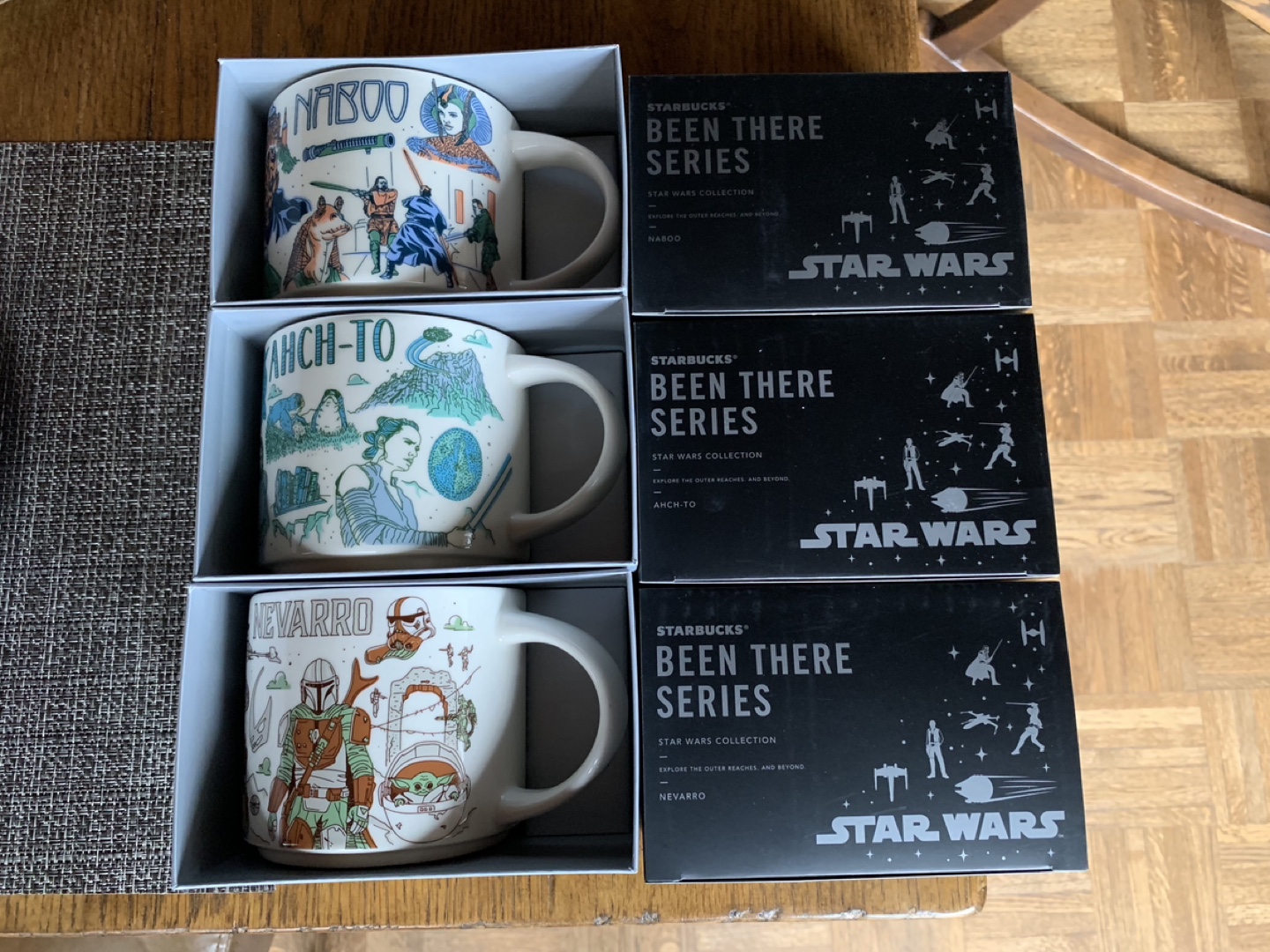 Starbucks Been There Series 3 Star Wars collection. Naboo, Ahch-To and Nevarro. New in box. Collectible mugs.