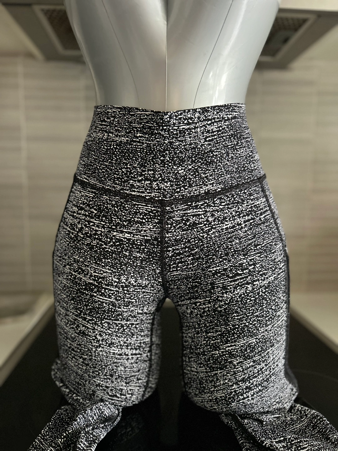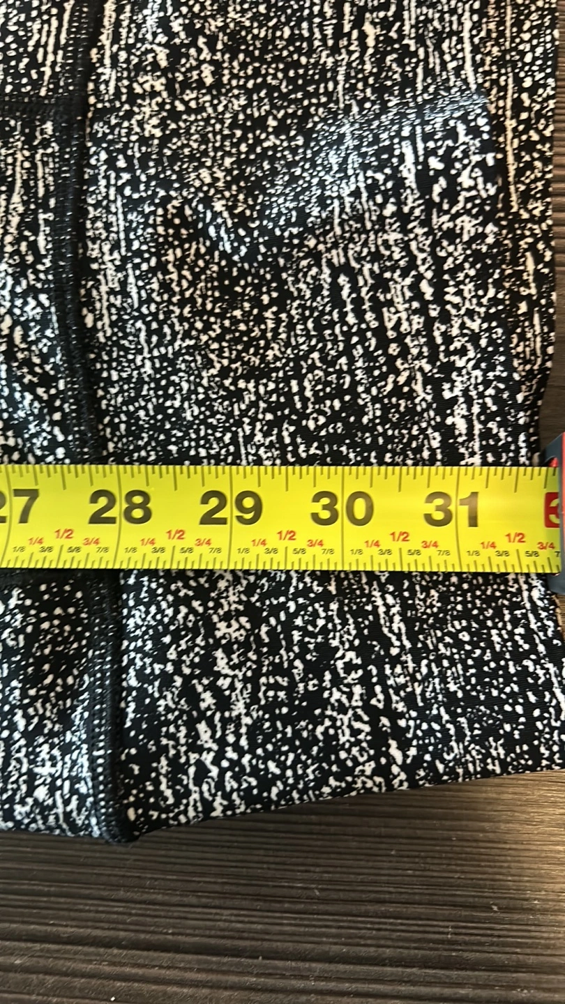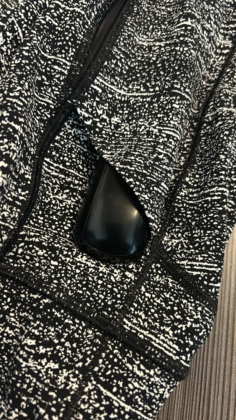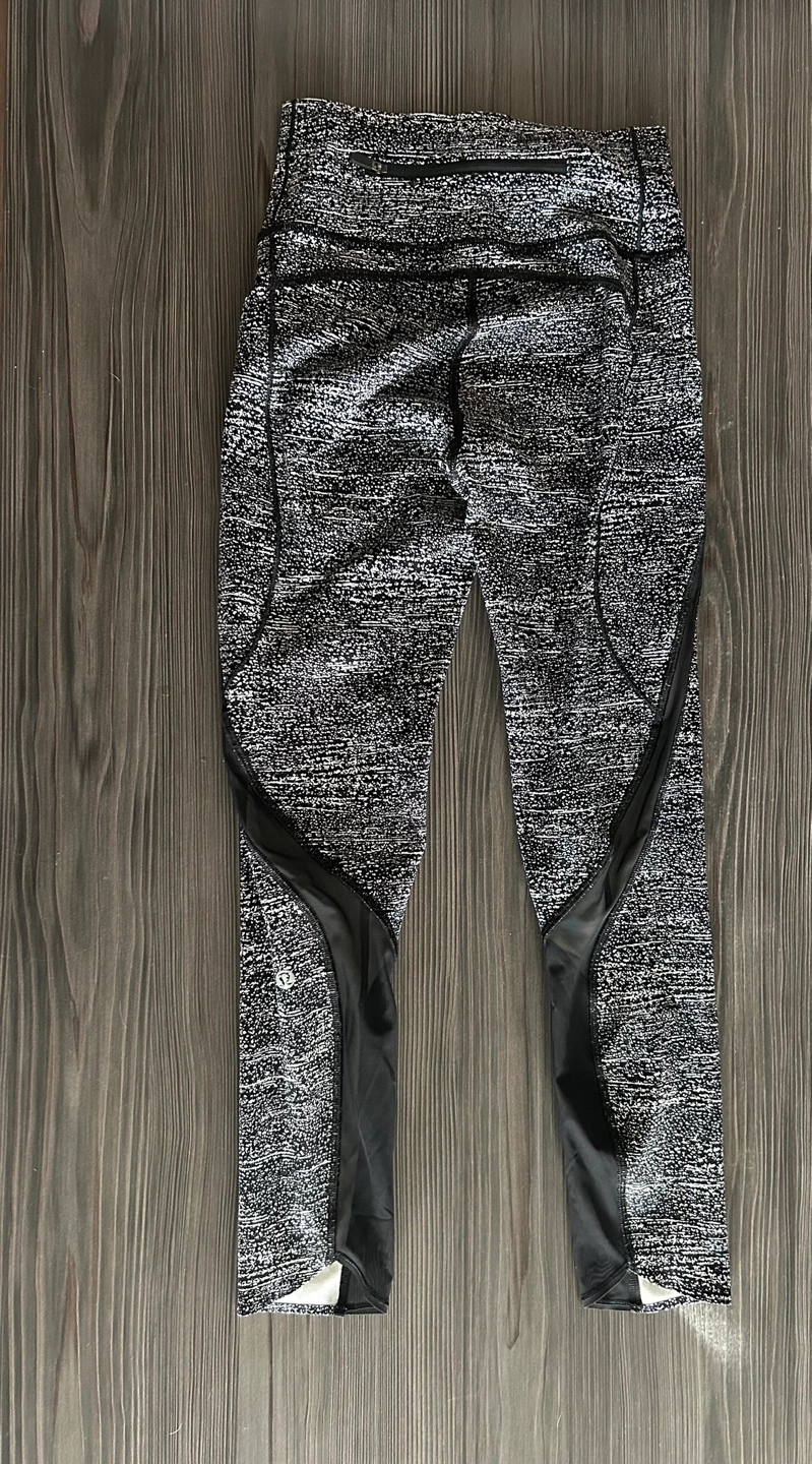 Lululemon 7/8 leggings. Black and white speckled pattern. High waisted. Side pockets. Back zipper pocket. Excellent condition.