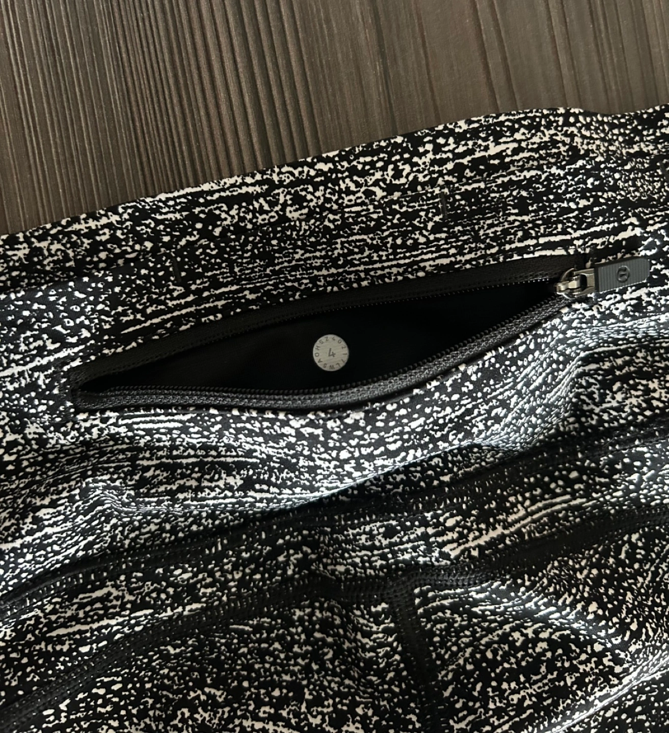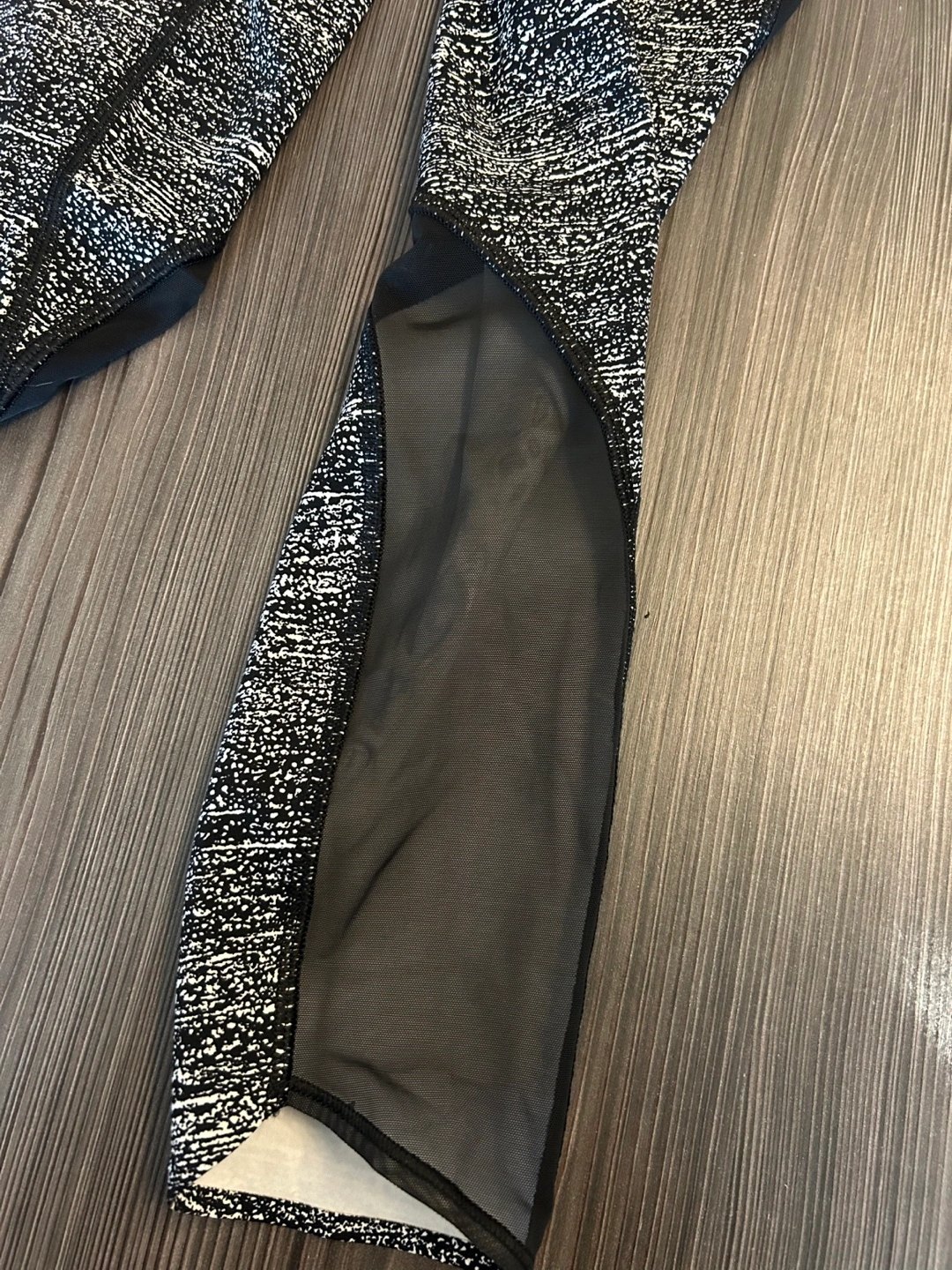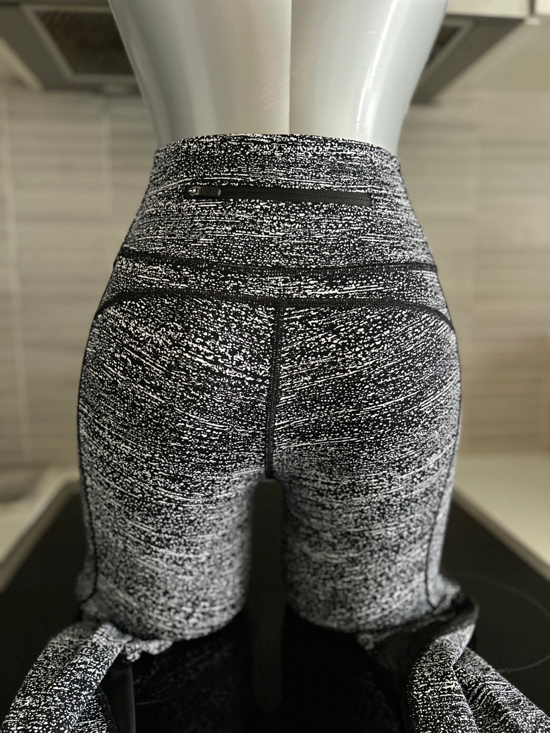Lululemon 7/8 leggings. Black and white speckled pattern. High waisted. Side pockets. Back zipper pocket. Excellent condition.