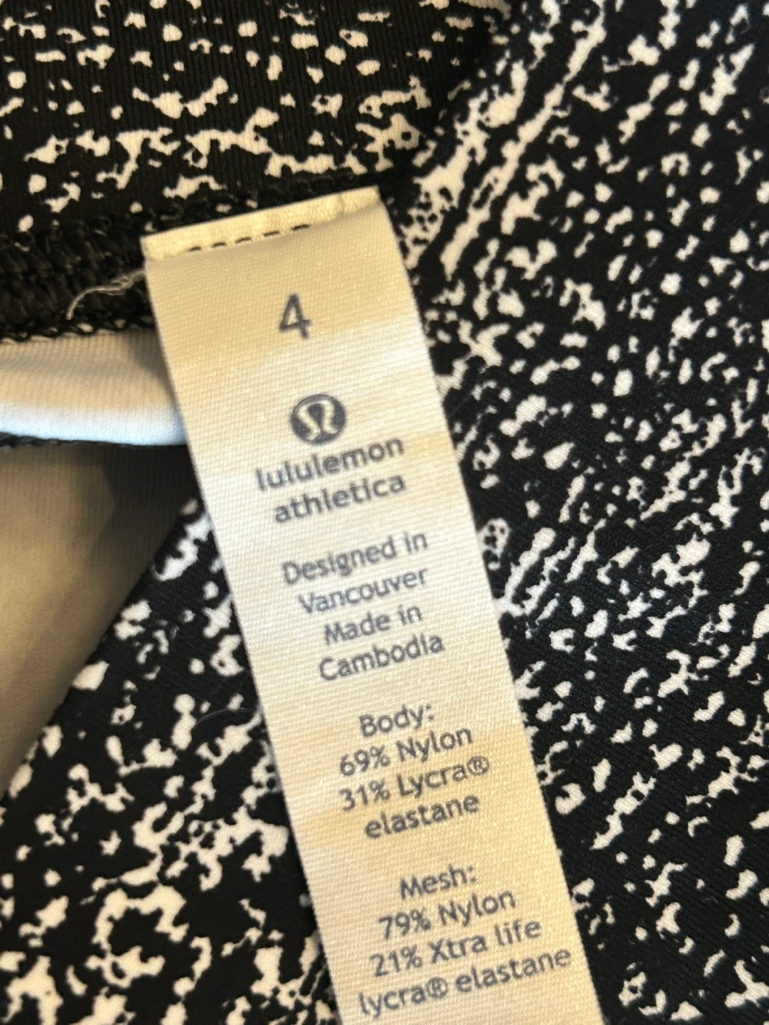 Lululemon Black White 7/8 Leggings Size 4