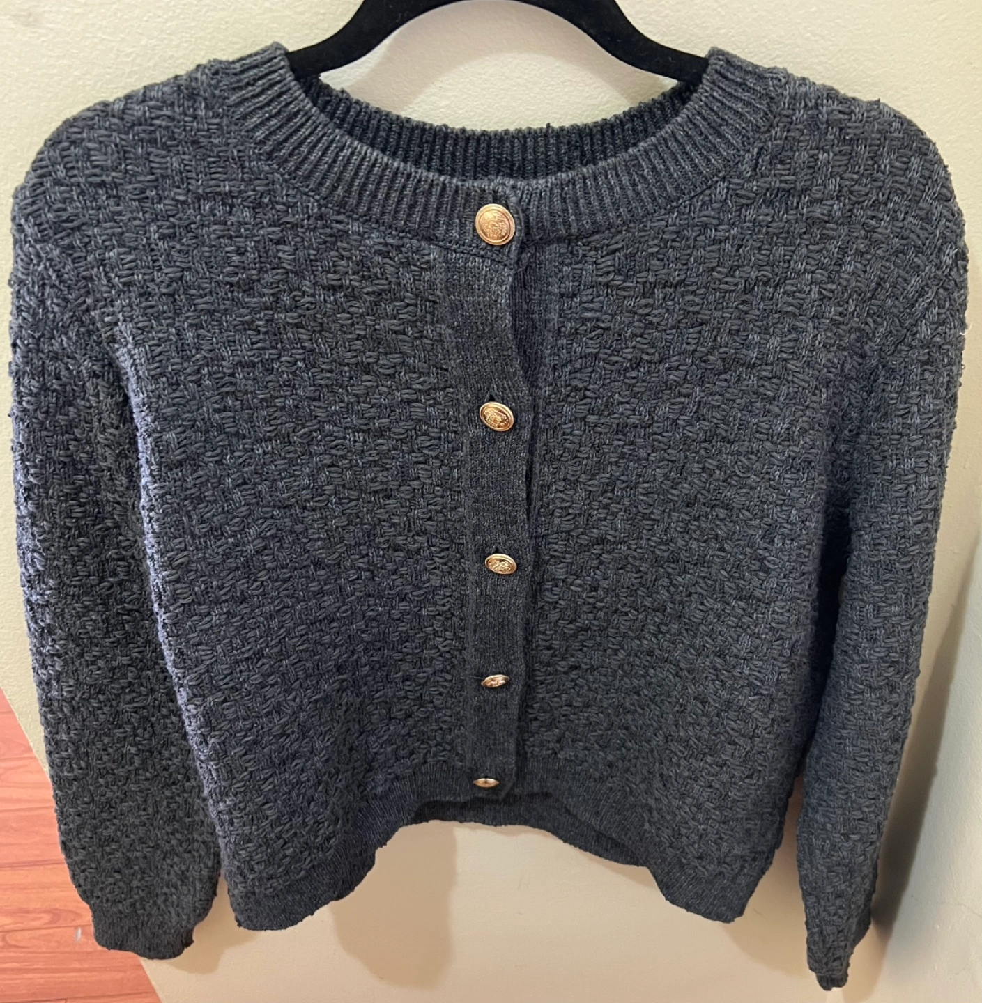 Brand New H&M Grey Knit Cardigan with Gold Buttons L with Tag