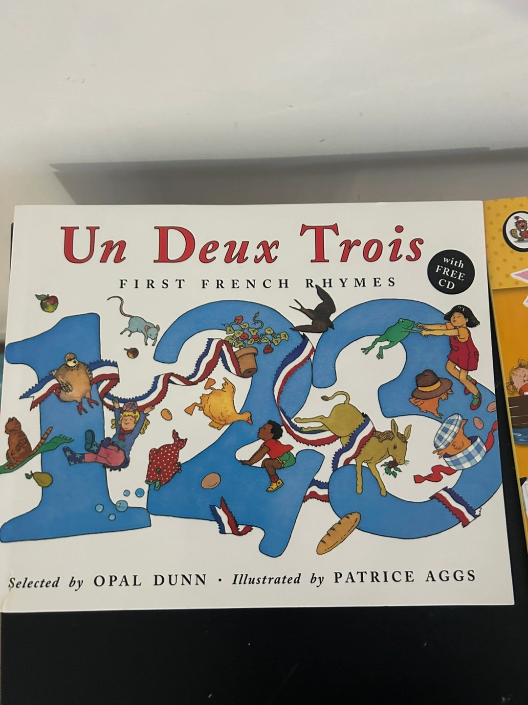 Ten children's books to help learn French. Includes rhymes, vocabulary for home, family and general words. Some books include CDs.