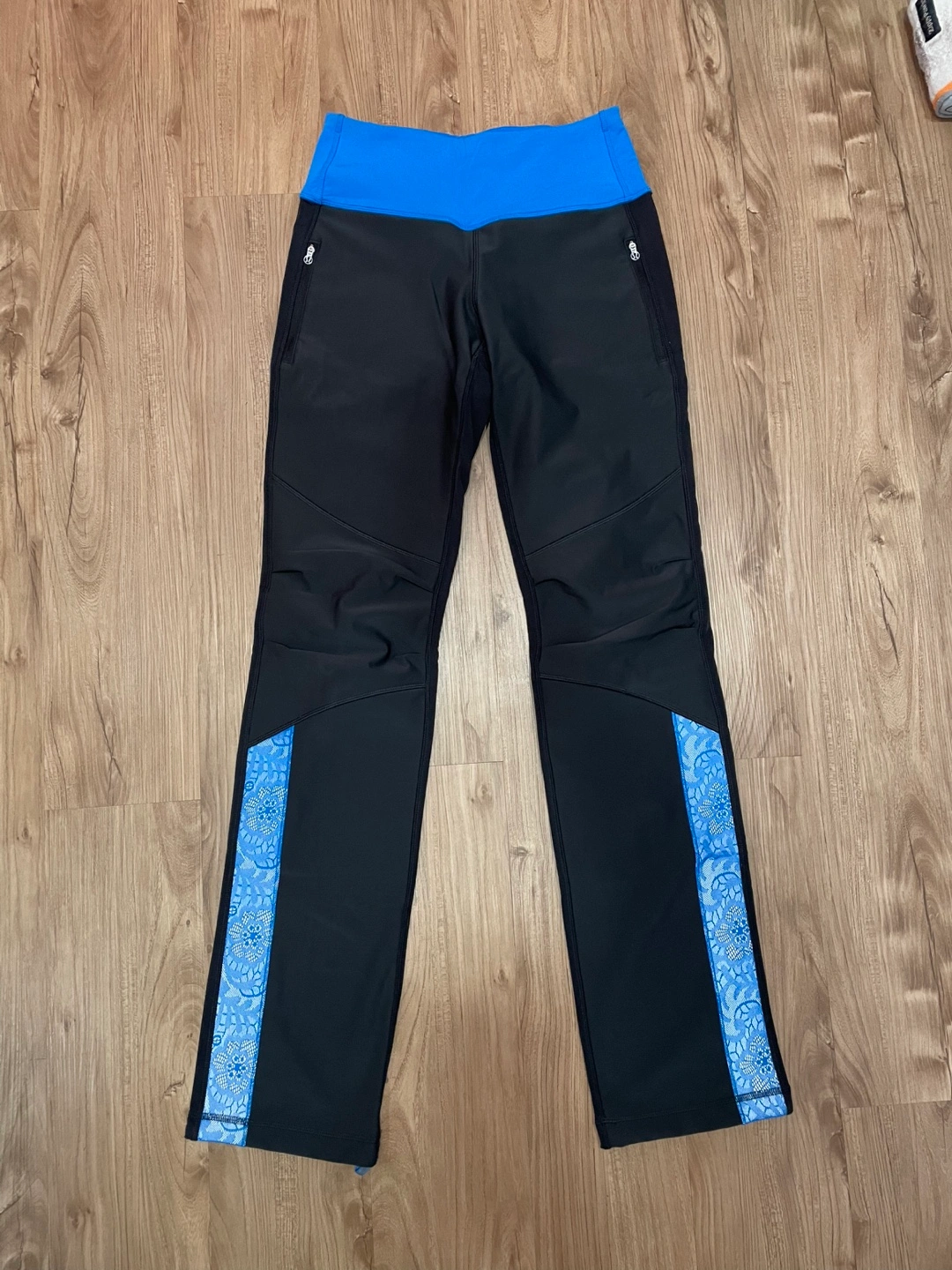 Women's size 4 tall Lululemon pants Black with a blue waistband. Full-length. Excellent condition.