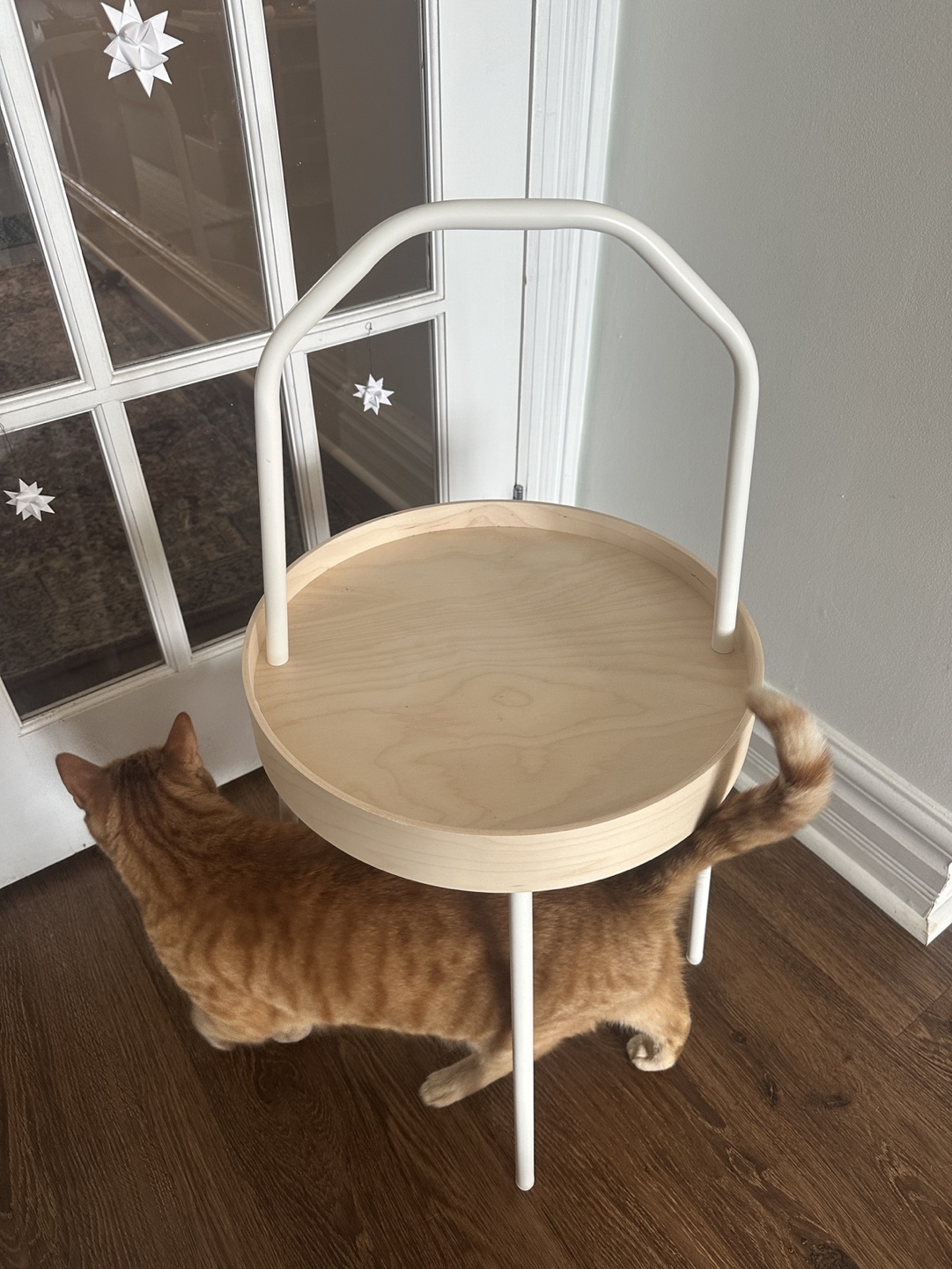 The table top has extra high edges, so that things don’t slide off when you carry the side table.