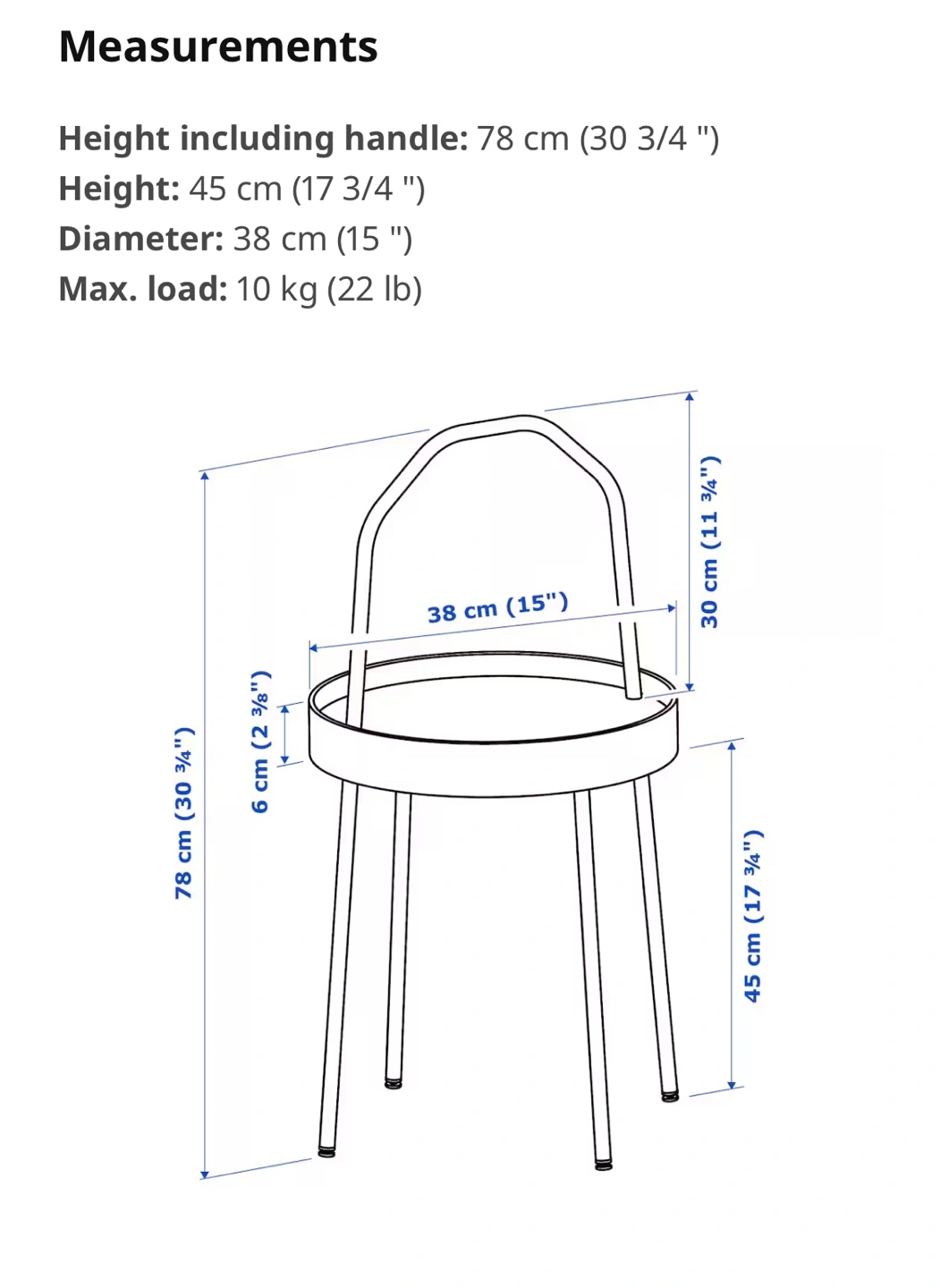 “The side table is light and small enough to lift with one hand, and the handle makes it easy to carry around the home.