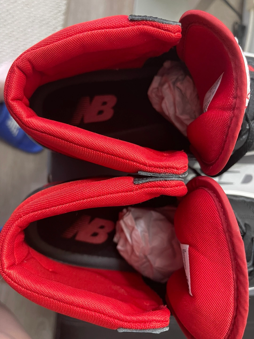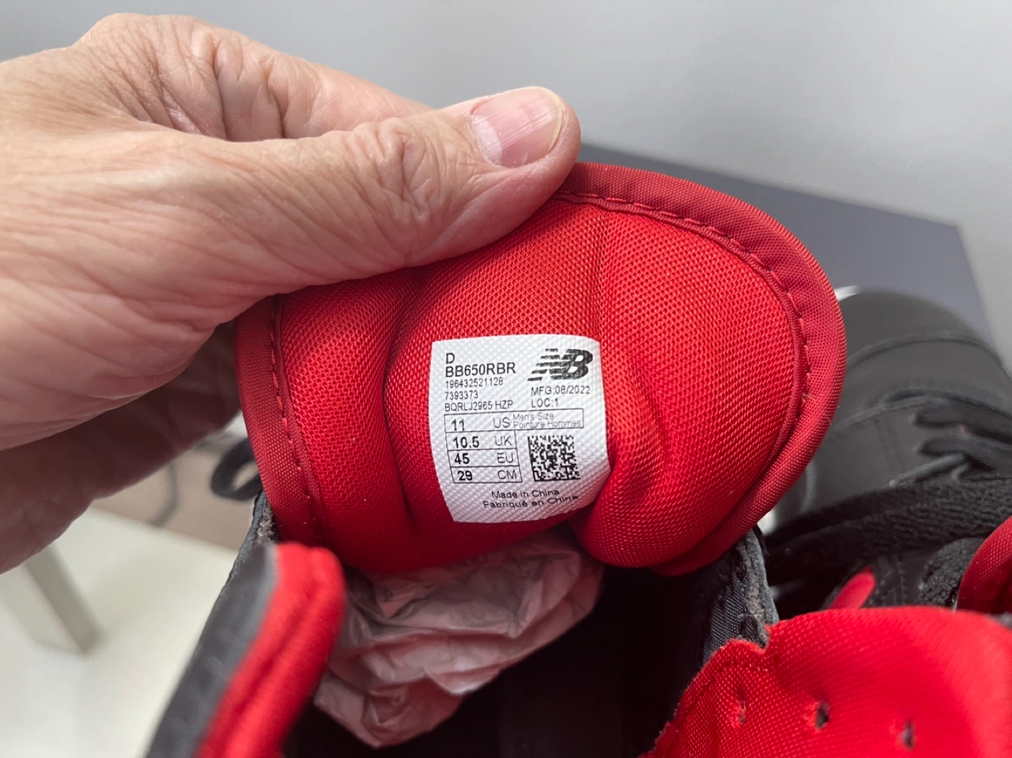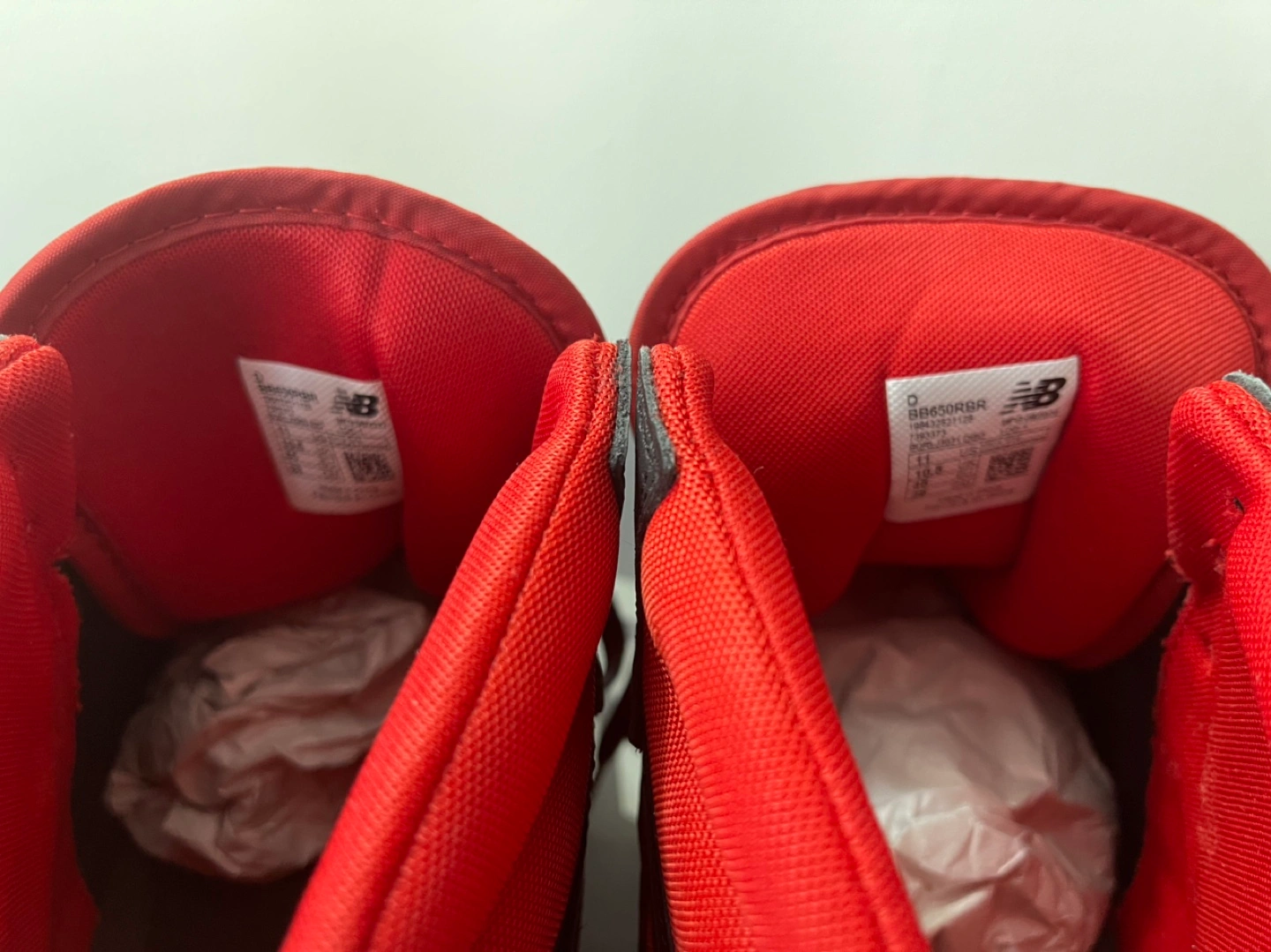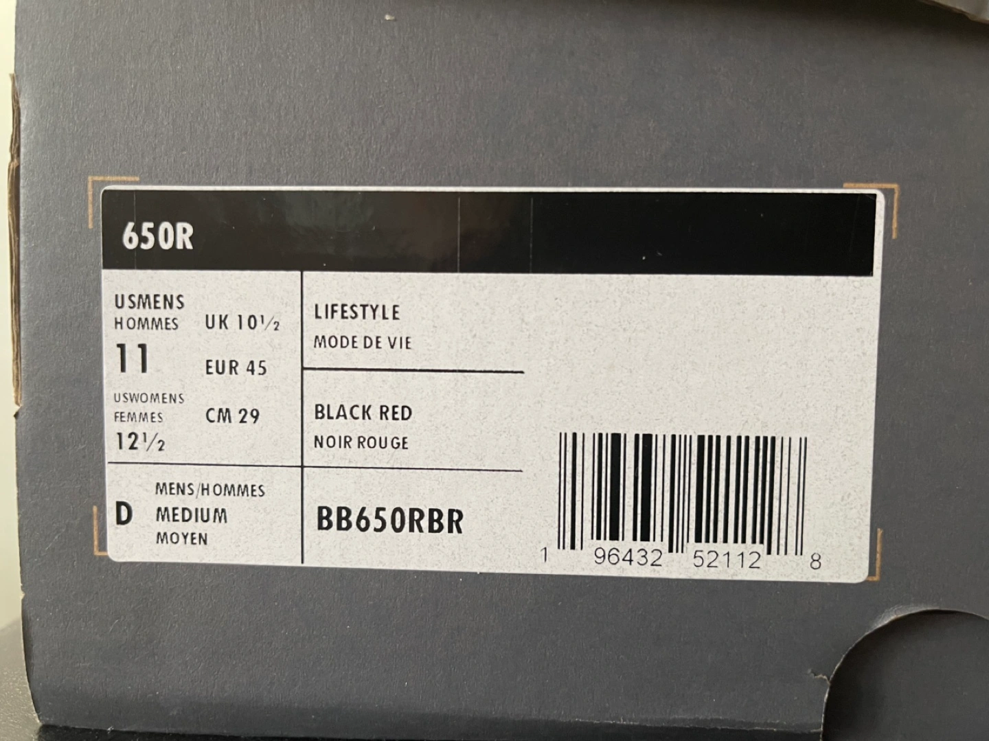 New Balance 650R basketball shoes. Men's size 11. Black and red colourway. High-top design. Pre-owned, in box.