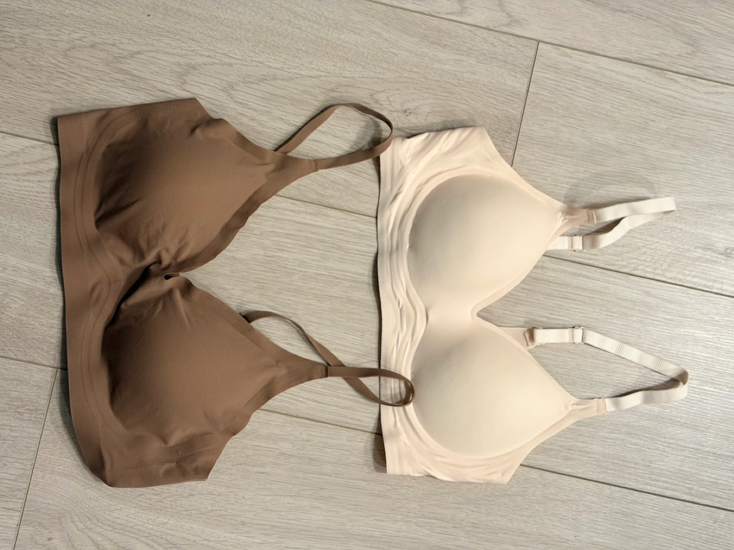 Pair of wireless bras. One taupe, one beige. Soft and comfortable material. Good condition. From Amazon couldn’t return