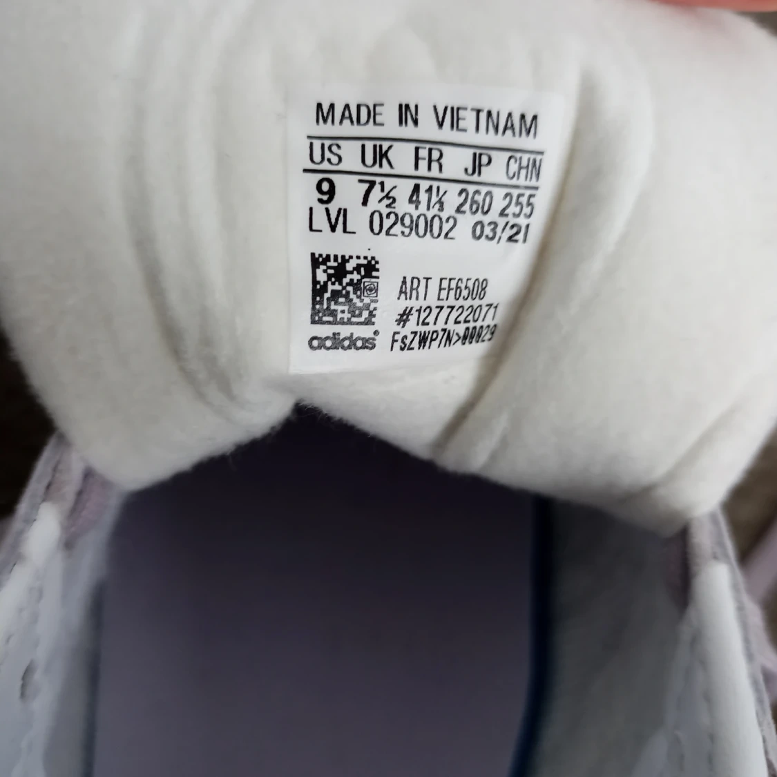 women's shoes Adidas gazelle, size: US 9, colour: light purple. I bought them for myself, but the size was bigger than I needed.