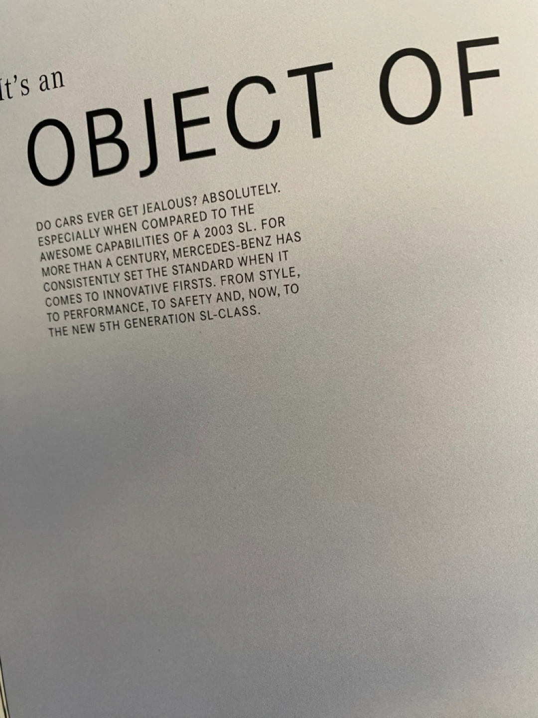 Original Mercedes-Benz brochure. Features photos and details about the 2003 SL-Class. Great for collectors or enthusiasts. Excellent condition.
