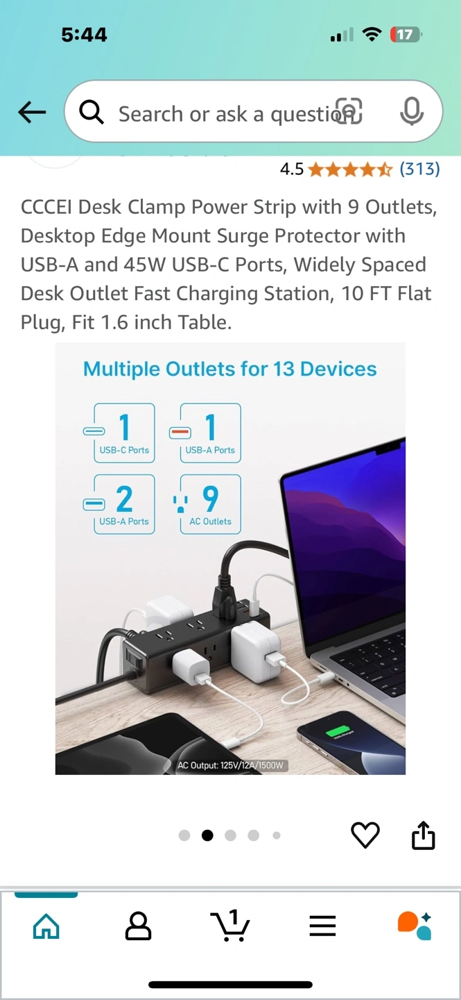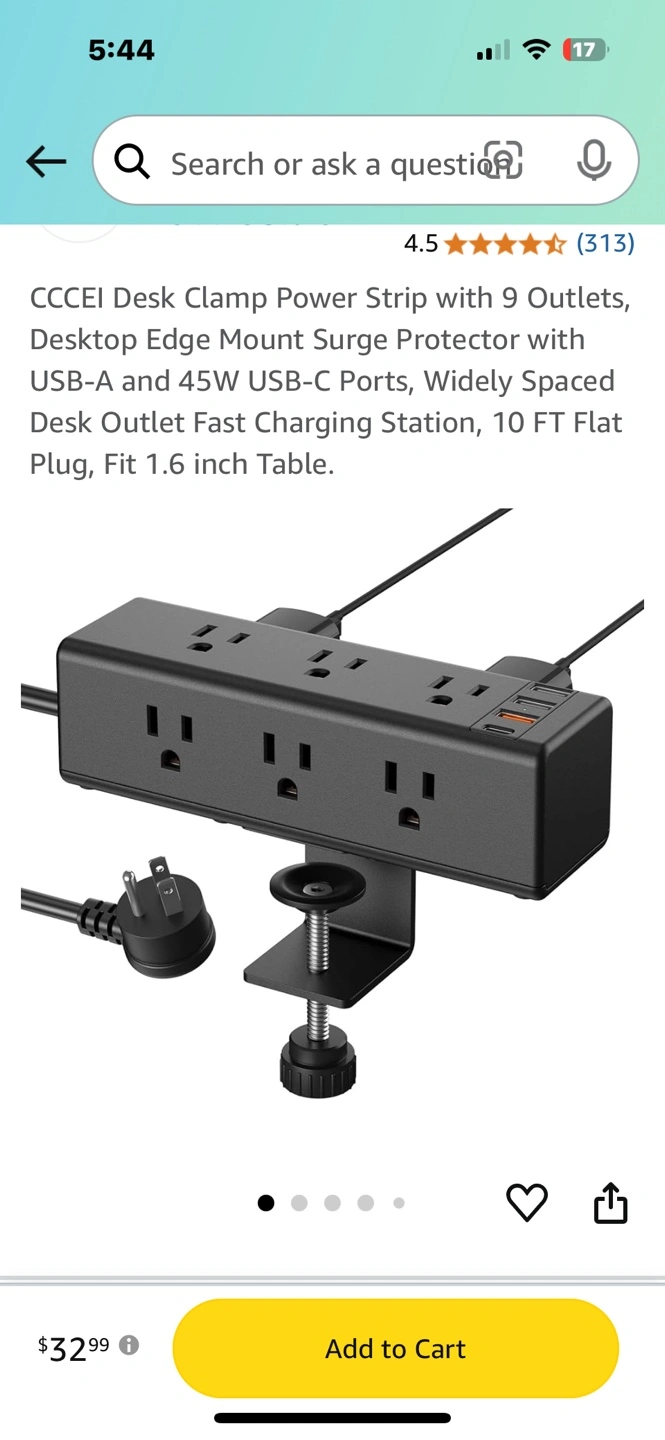 9 Outlets, 2 USB-A, 1 USB-C ports. 45W fast charging. 10ft cord. Clamps to desk. Surge protector. NEW