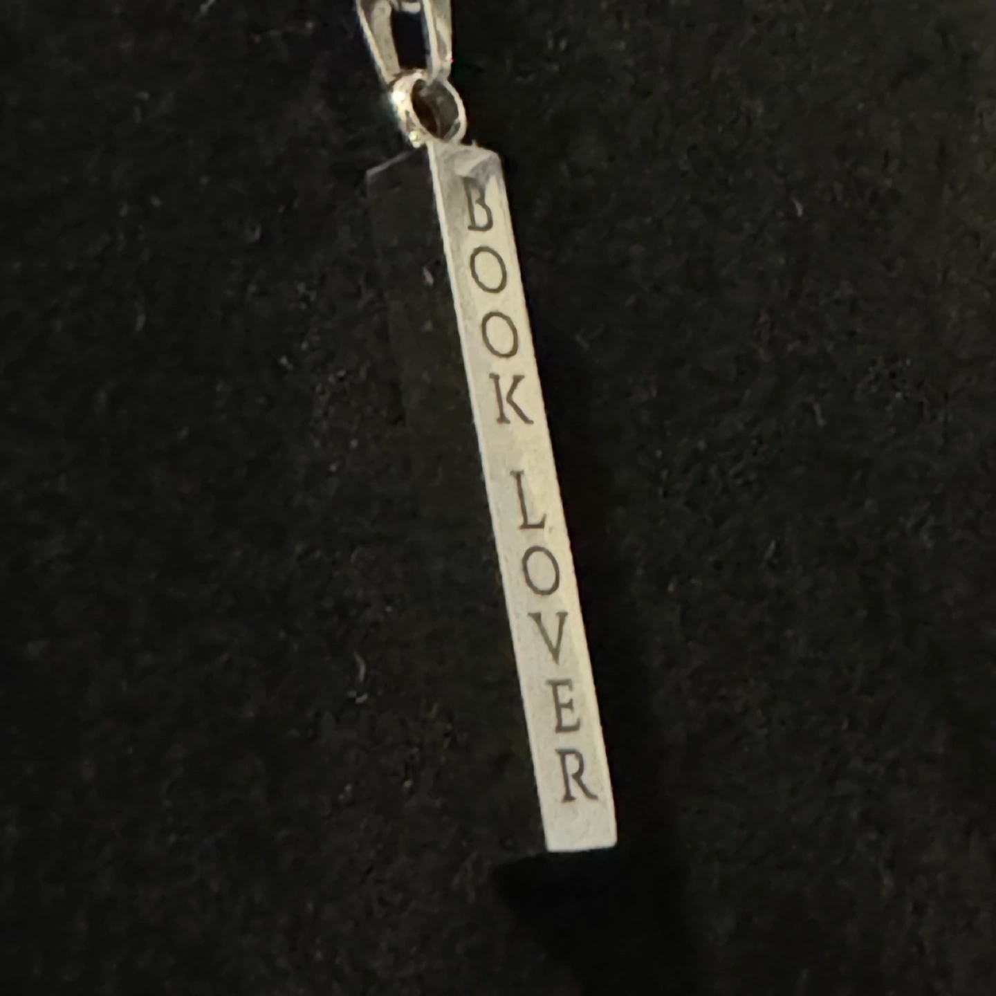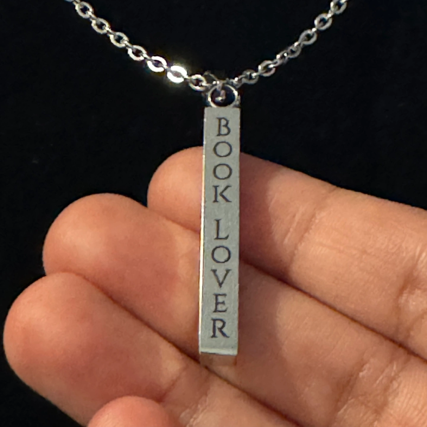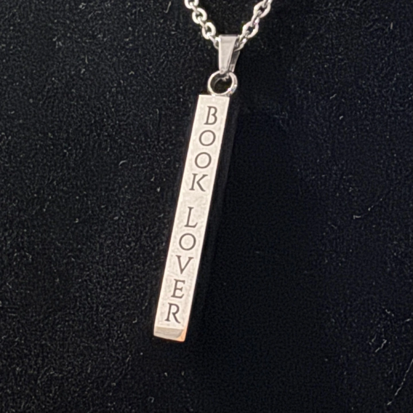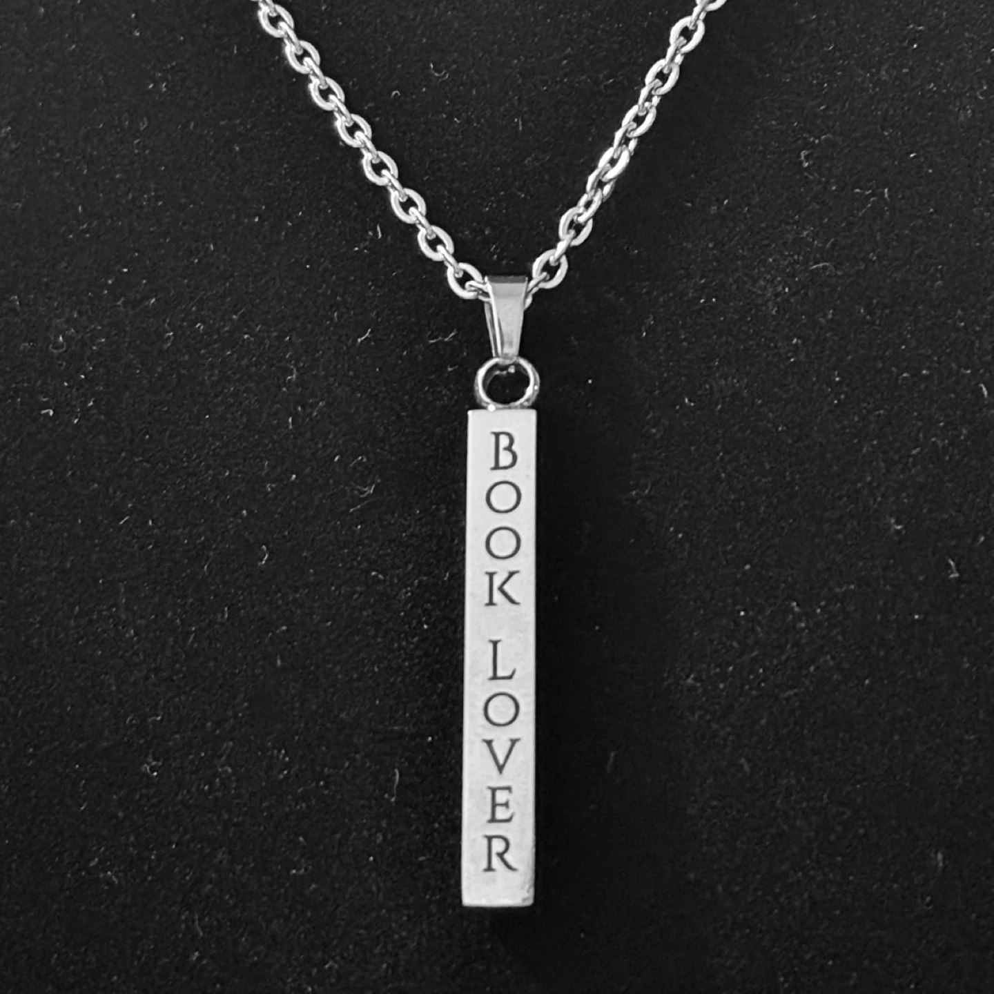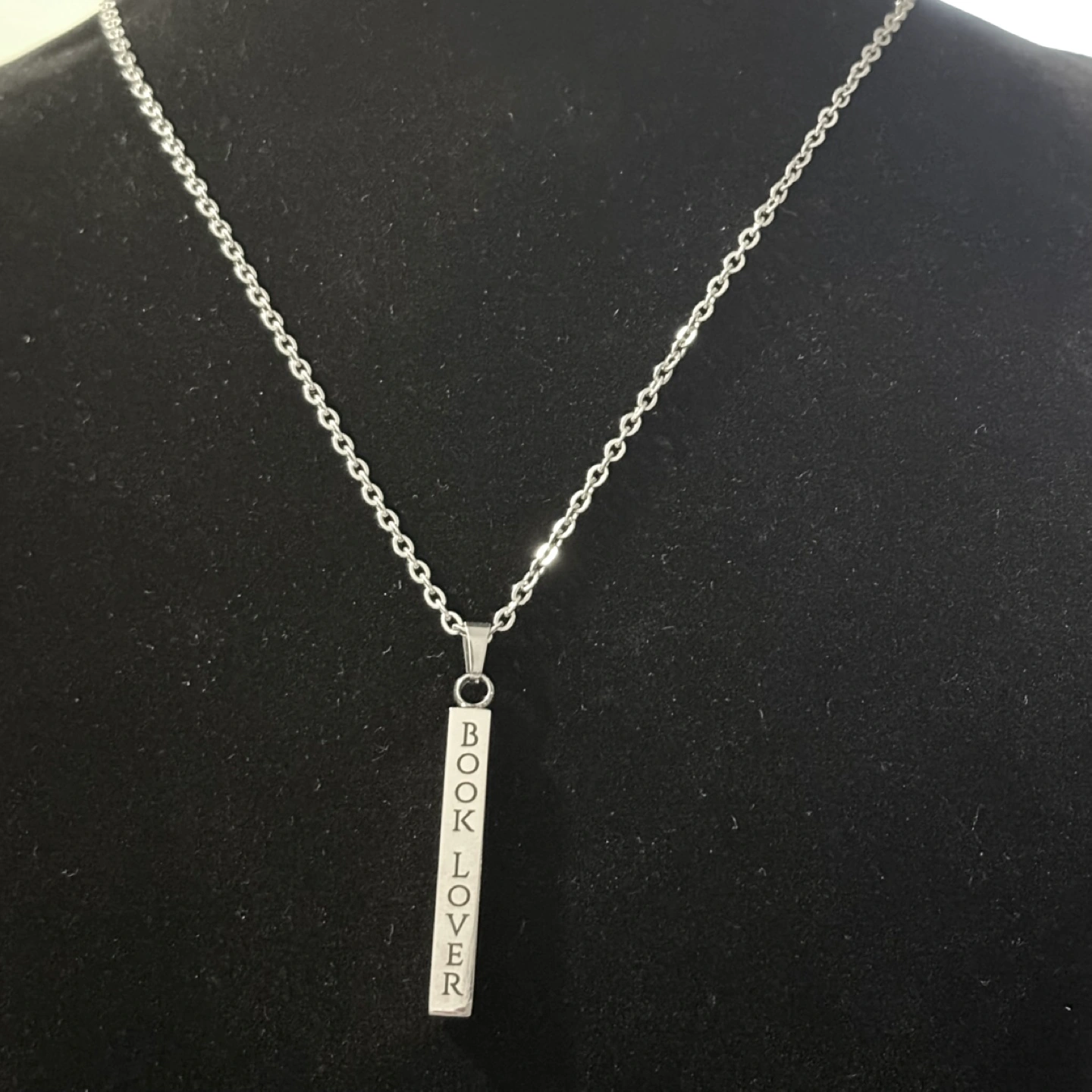 🧡 Book Lover Bar Pendant Silver Tone Necklace