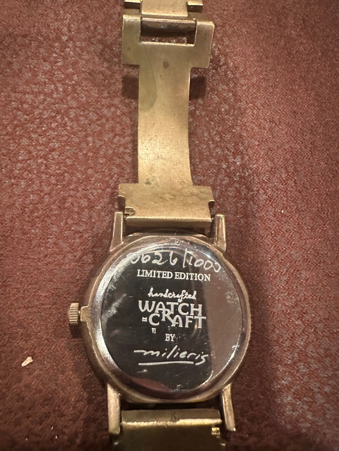 Vintage Womens Milieris watch. Limited edition. Handcrafted Watch Craft by Milieris. Features an engraved band. 26/1000 made