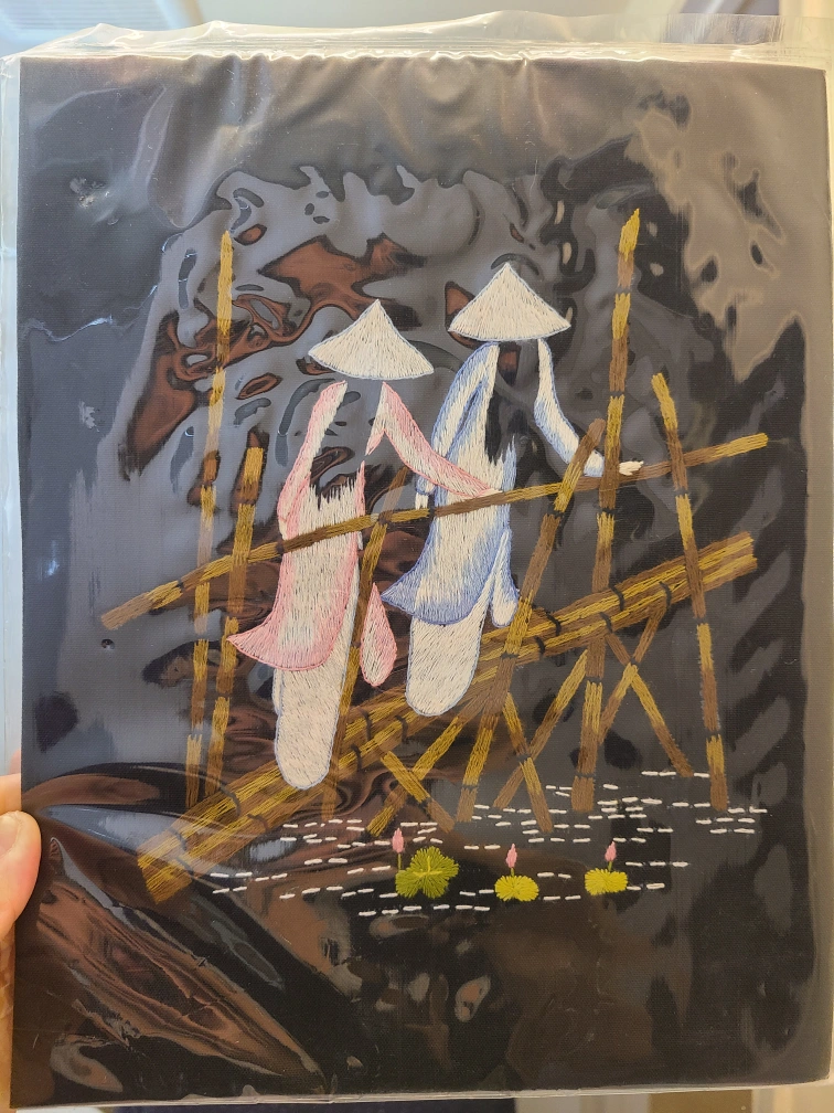 Traditional silk embroidered vietmanese female ao dai costume outfit portrait. Height ( TALL) :27.5 CM Width ( WIDE) : 21.5 CM Downtown( Sherbourne St and Gerrald St East) PICK UP ONLY* CASH ONLY* NO RETURNS OR EXCHANGES THANK YOU