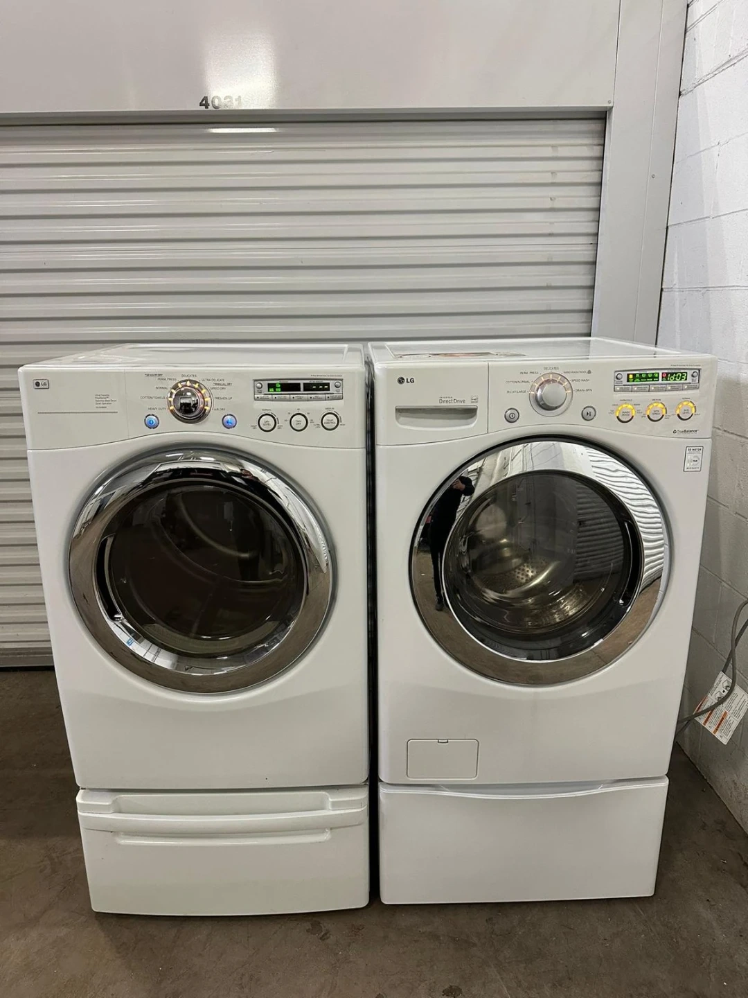 I sell LG washer and dryer. Both are in good working condition and ready for a new home! They are a matching set and come with storage pedestals and wash and separate drying!