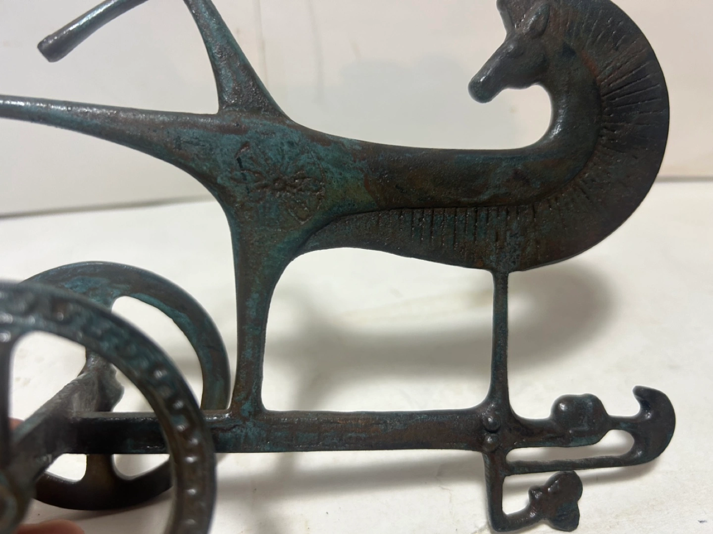 Weighs 15.7 ounces , This is an Antique and has a beautiful Patena on its Very ornate finish