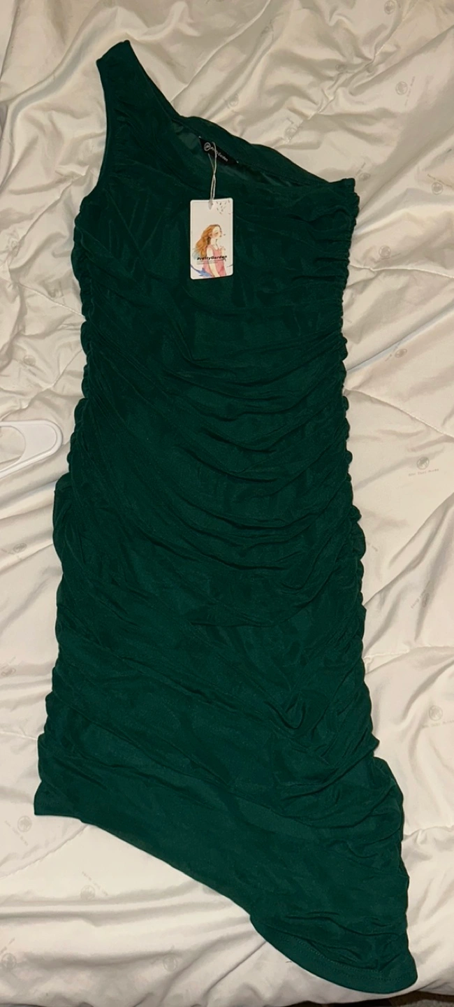 PRETTYGARDEN Emerald Green One-Shoulder Ruched Midi Dress