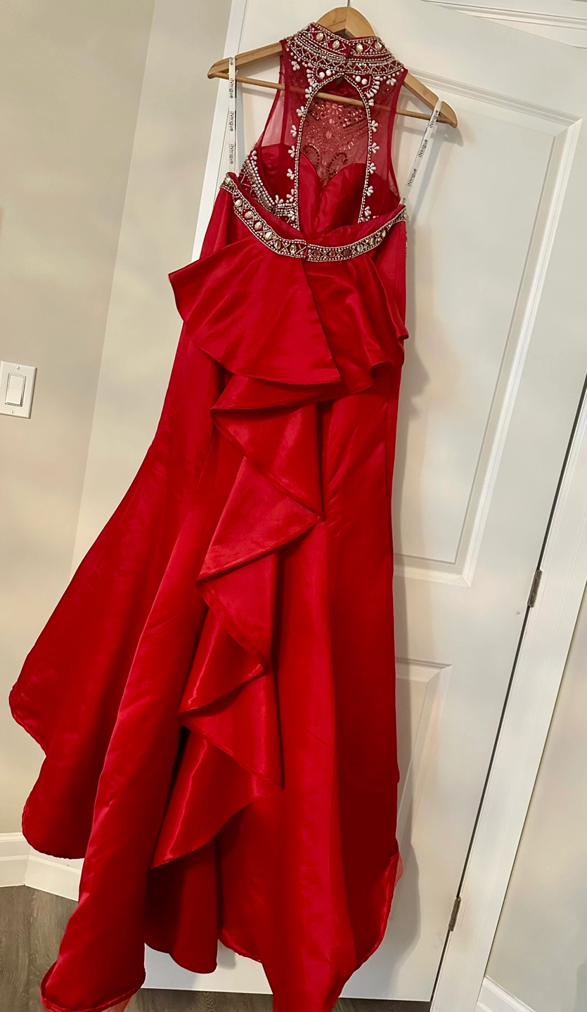 Size: 12 (evening gown sizing. It's probably a size 6 in "normal" sizing)