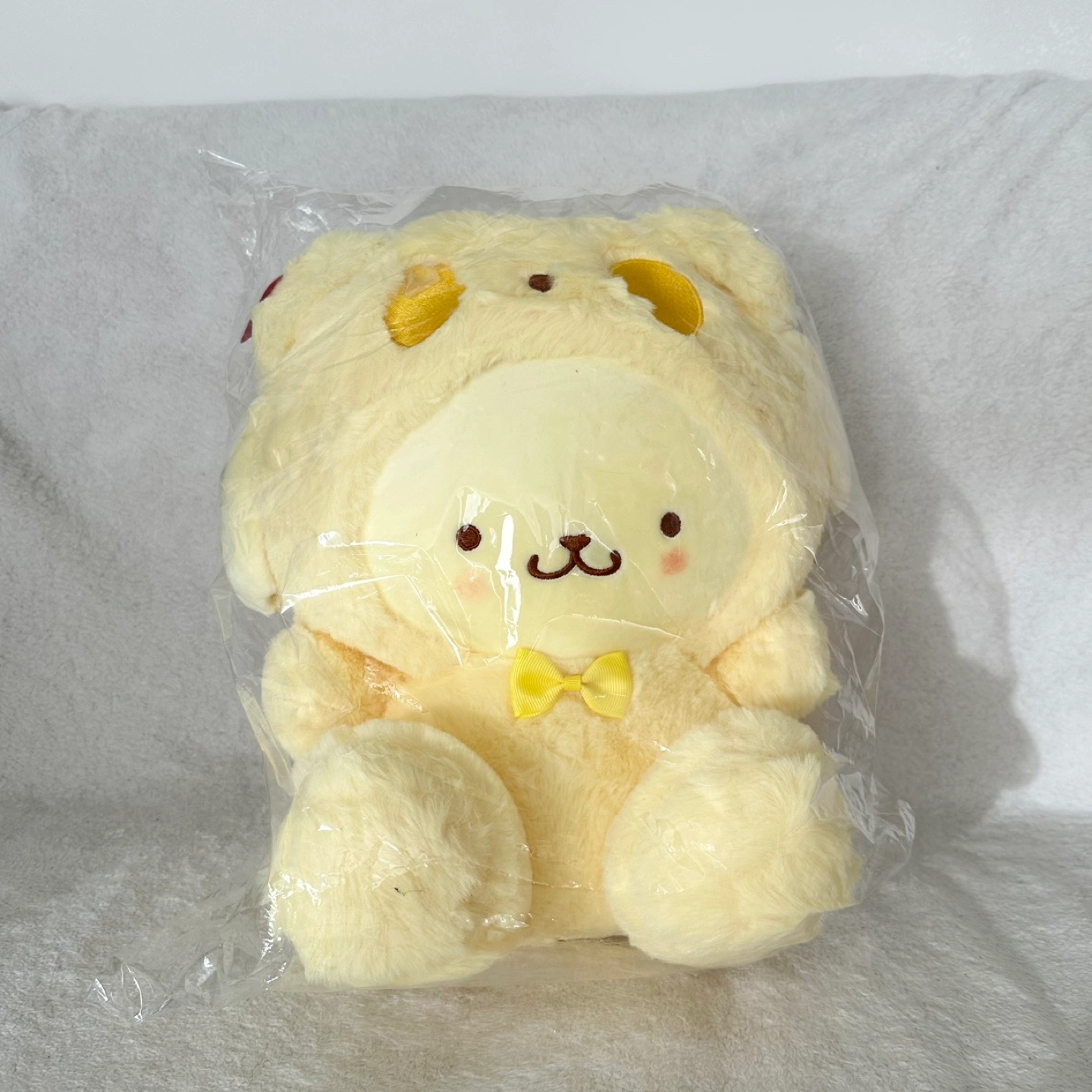 Cute pastel yellow Pompompurin plush toy. Soft and cuddly. New with tags.