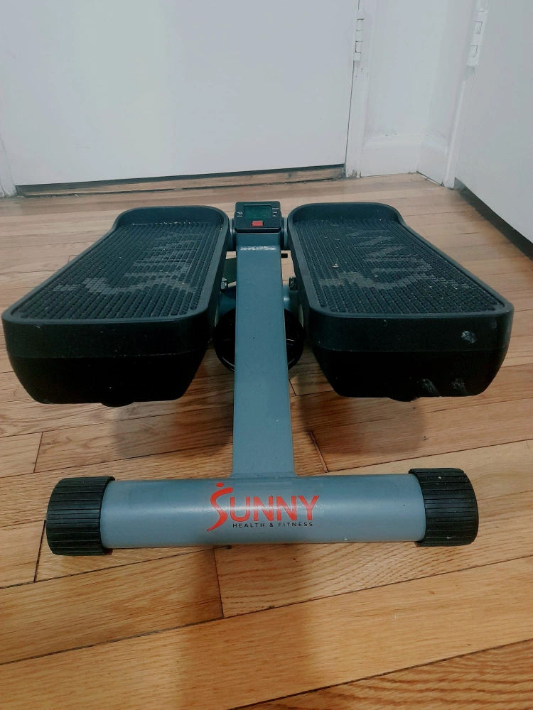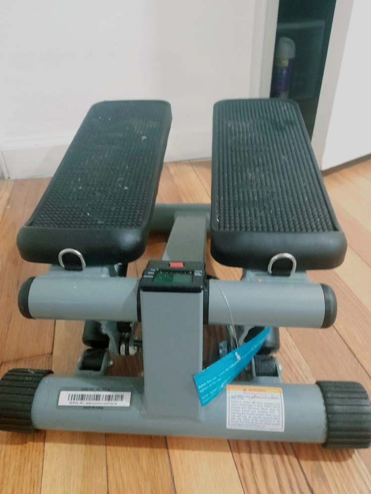 Compact stepper great for home workouts. Digital monitor tracks steps and calories burned. Features resistance bands for added workout intensity. Good condition, minor wear.