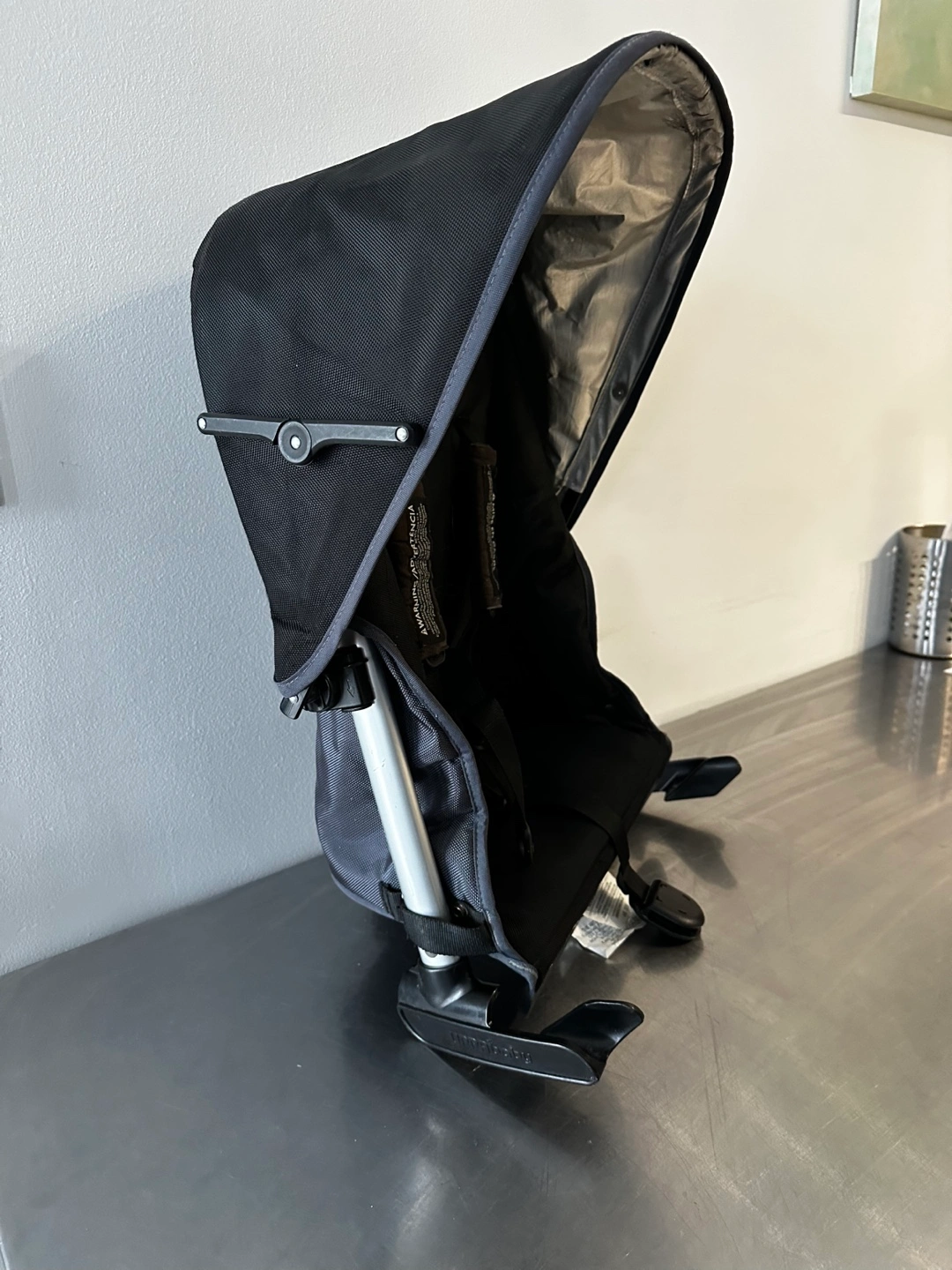 Black Rumble Seat. Bought for my 2012 UppaBaby Vista model. This is V1 so I don’t think it will fit on newer UB models but would need to look this up. Includes sunshade.