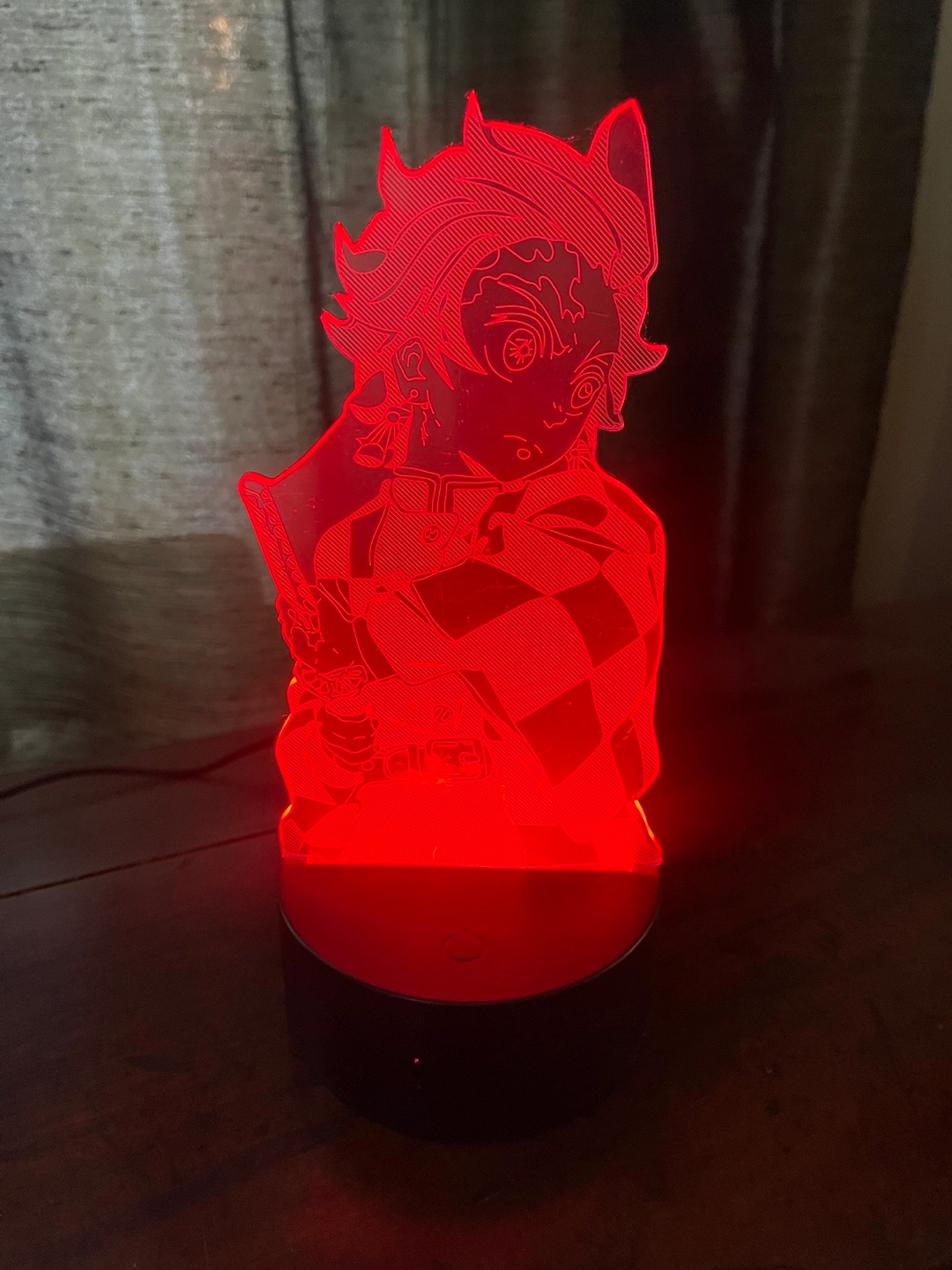 Anime LED night light. Features Tanjiro Kamado from Demon Slayer. USB powered. Great for fans. Unique design.