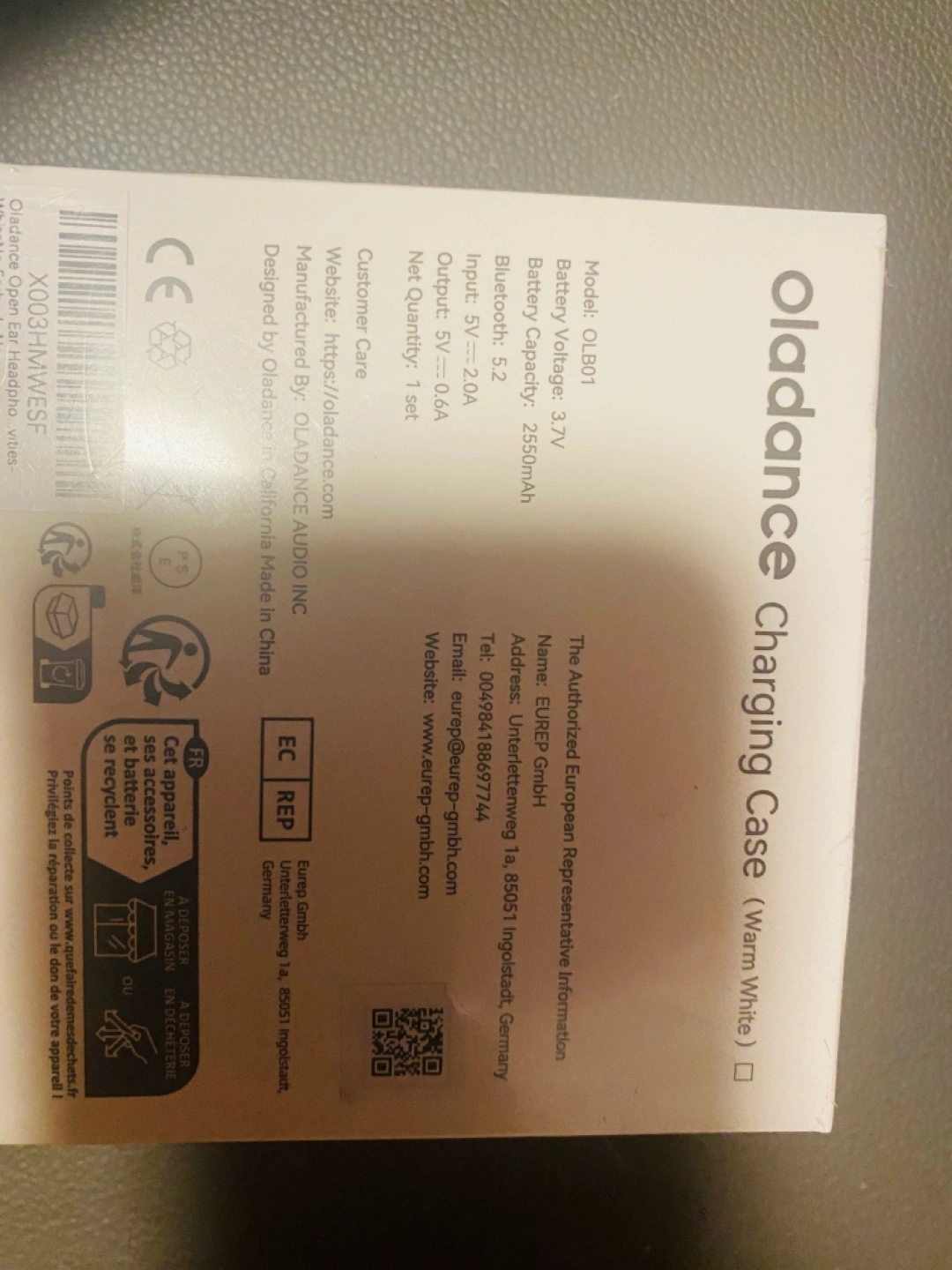Brand new OlaDance charging case. Warm white colour. Model OLB01. 2550mAh battery capacity. Bluetooth 5.2. Includes one charging case.