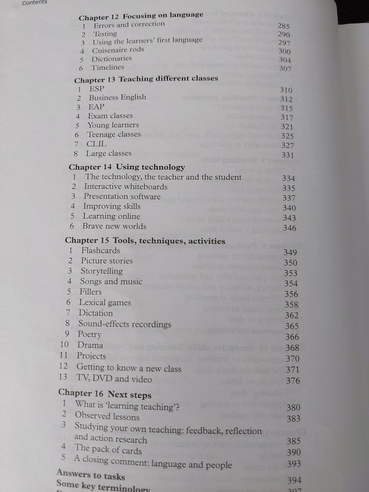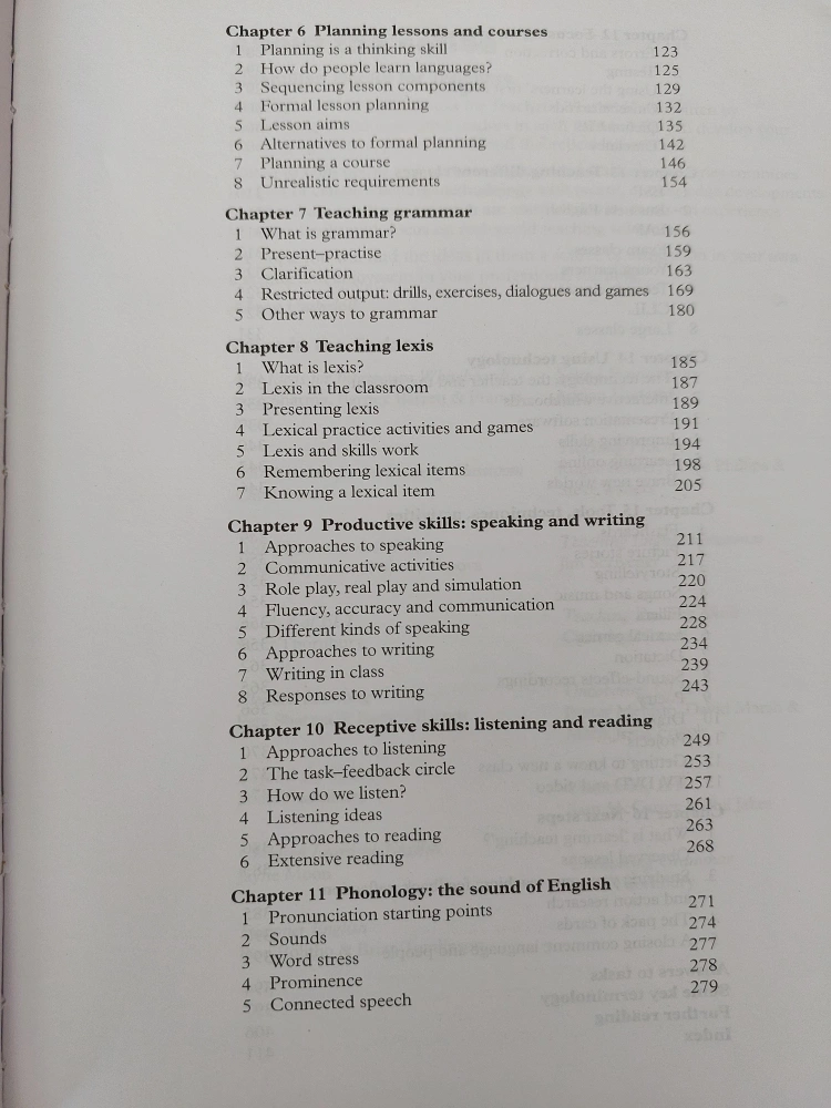Covers lesson planning, grammar, lexis, speaking, writing, listening, reading, pronunciation, and classroom management.