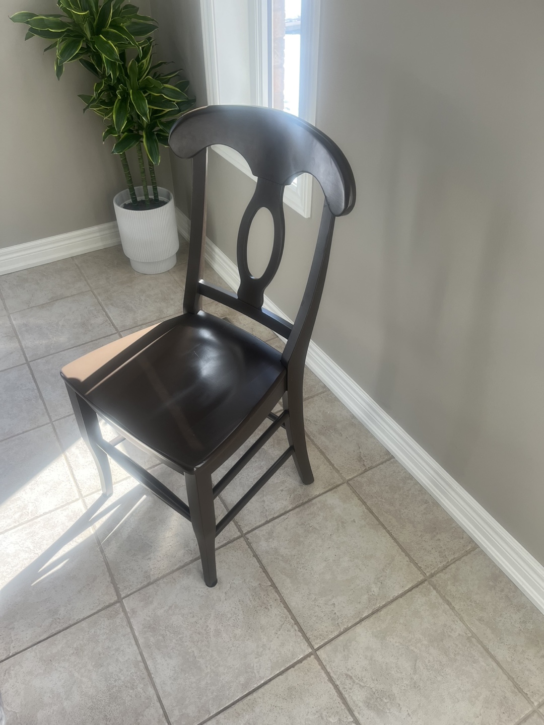 Solid wood maple chair. Dark brown finish. (Chocolate ) Simple design. Suitable for dining room or kitchen.