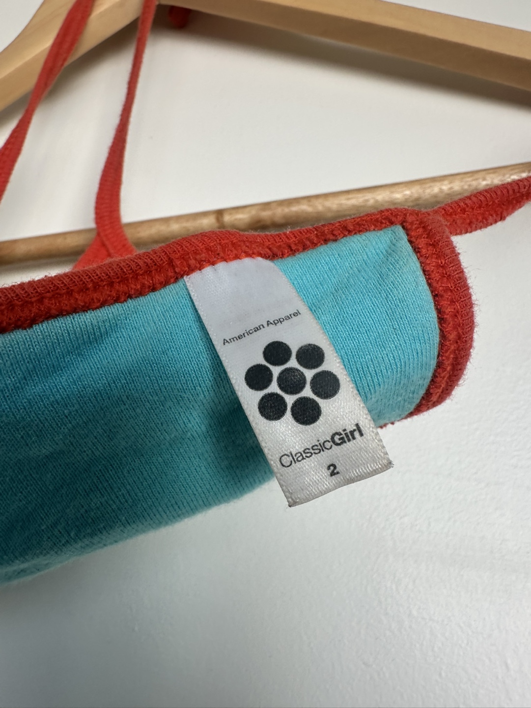 Teal and orange 🍊 bikini top. Size 2. Real Vintage American Apparel ClassicGirl label attached. Bought in 2008, 100% cotton.