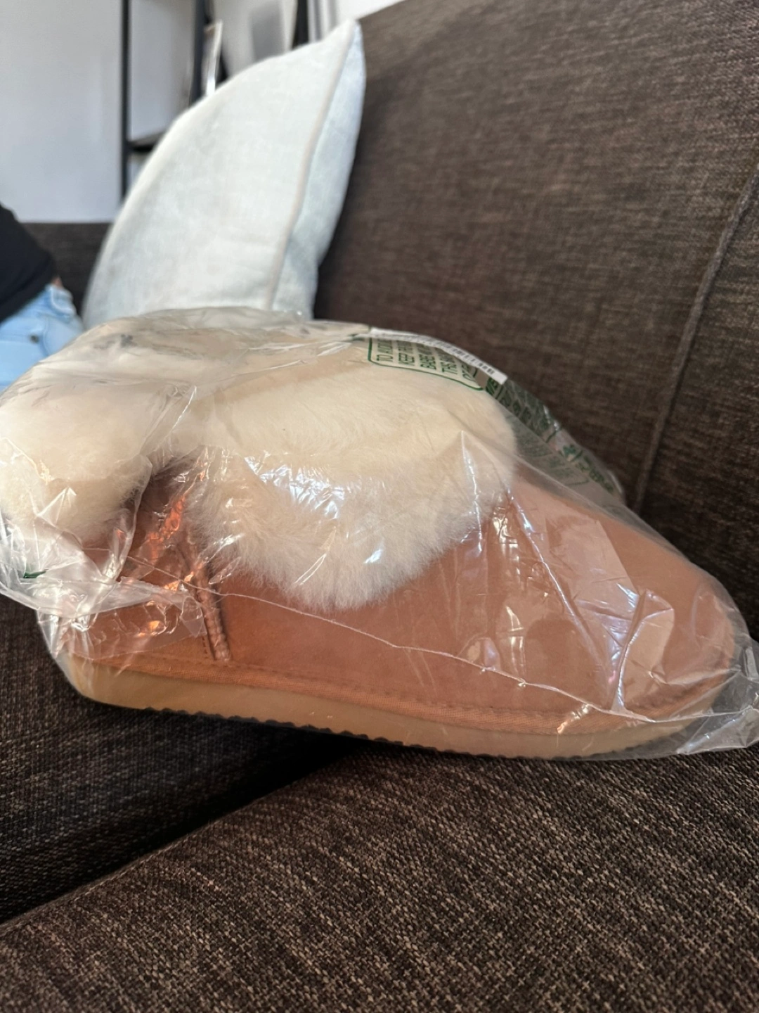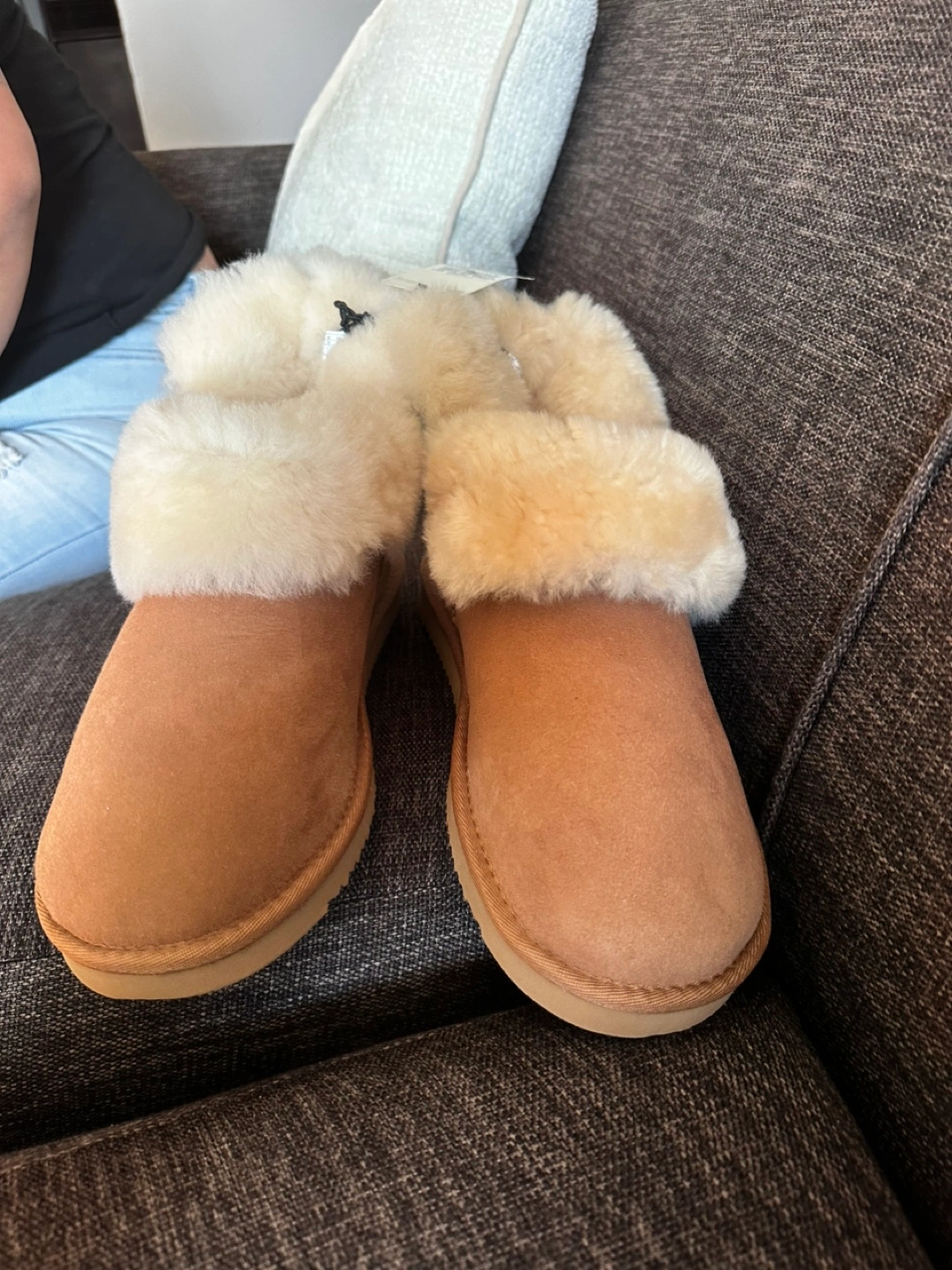 Women's chestnut brown shearling foldover boots. Water resistant. Indoor/outdoor use. Genuine sheepskin.