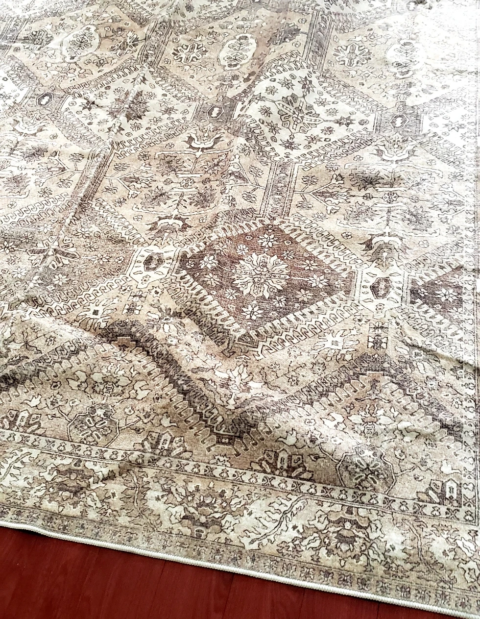 Brand New Vintage Area Rug 8x10 Brown Multi Washable Living Room Kitchen Indoor Carpet Non Slip Bedroom Traditional Medallion Distressed Retro Low Pile Accent Throw Large Rug Office Dining