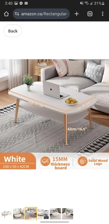 Brand New Coffee Table, Modern Rectangular Living Room Tea Table, Cocktail Table 2-Tier Storage Shelves with Wood Table Legs Table End for Home (White, 120CM)