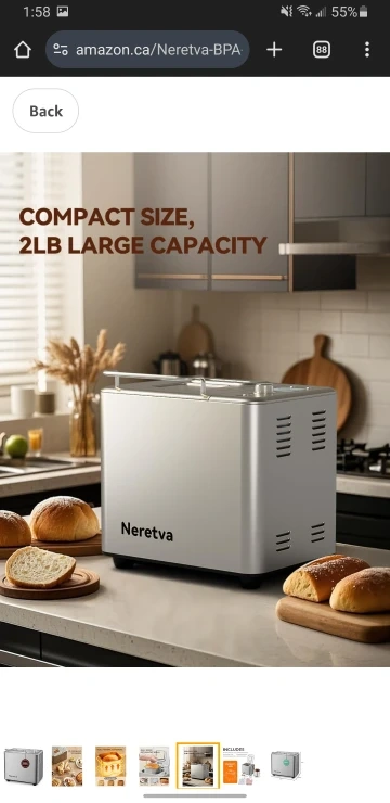 Brand New Neretva Bread Maker, [20-IN-1 & Dual Heater & 2LB]Smallest Size Bread Machine Nonstick Ceramic Pan Bread Maker Machines All Metal for Gluten Free/Dough Maker/French/Dried Meat Floss/Jam/Yogurt(Silver)