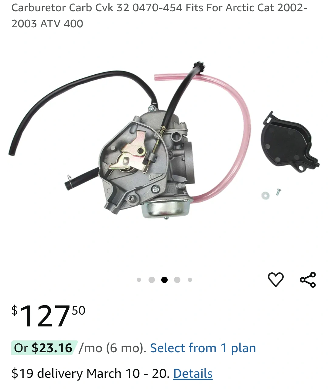 Arctic Cat ATV 400 carburetor. Includes fuel filter and lines. Model number 0470-454. Fits 2002-2003 models.