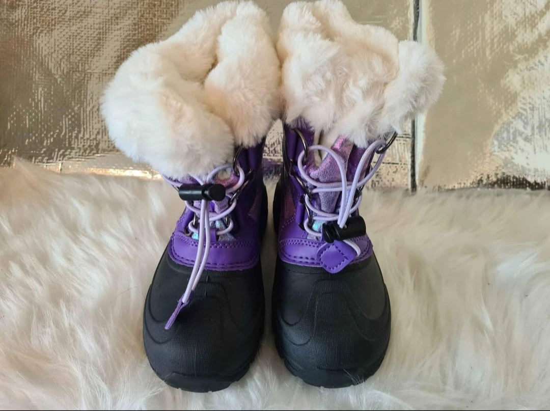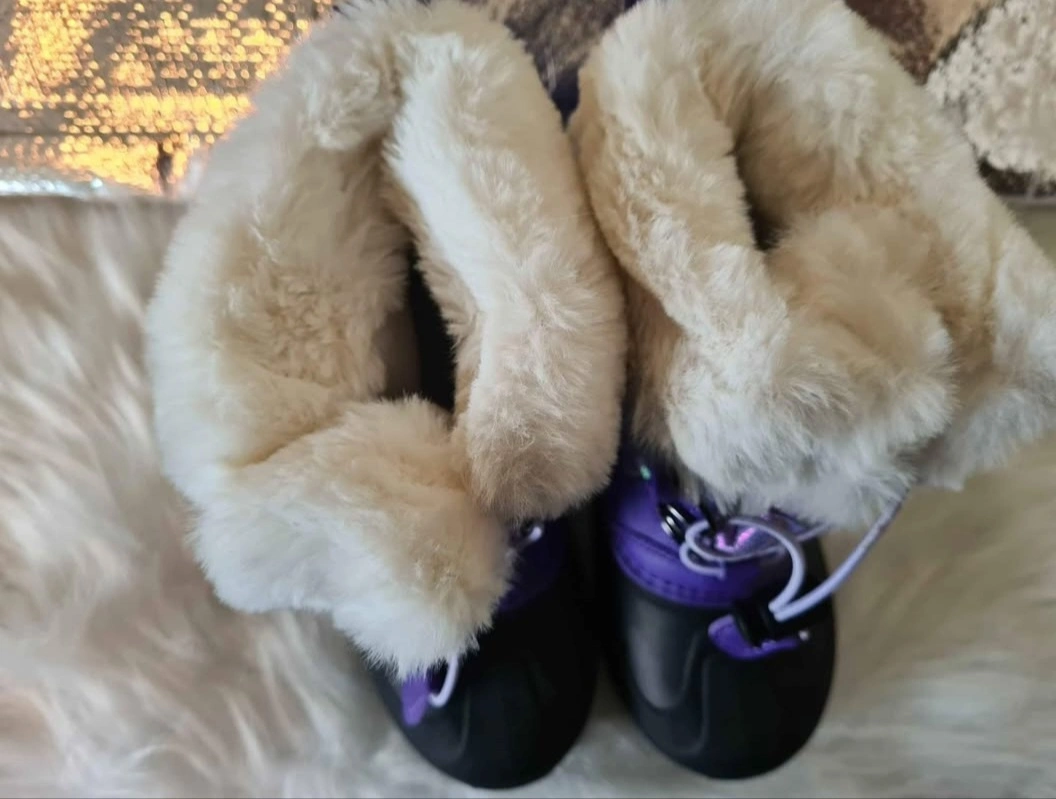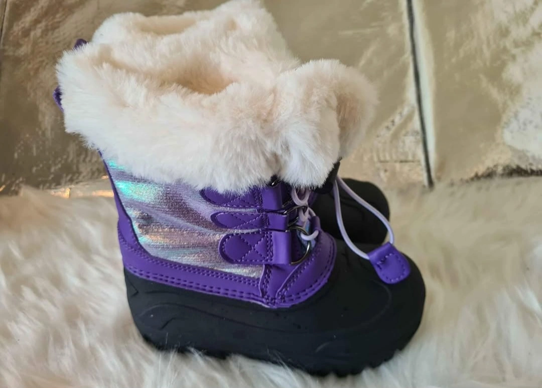Adorable purple snow boots. Features faux fur trim and a waterproof bottom. Great for keeping little feet warm and dry in the snow.