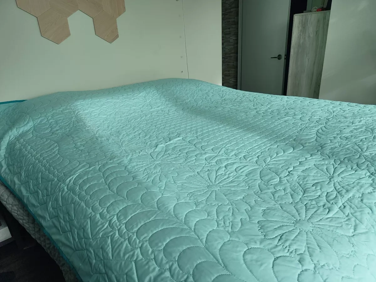 Introducing The Soothing Shades of Seafoam, a quilt that blends elegance, serenity, and timeless craftsmanship. Handcrafted in the 1950s by my grandmother, this vintage treasure speaks to a refined era of artistic quilting, where beauty and quality went hand in hand.