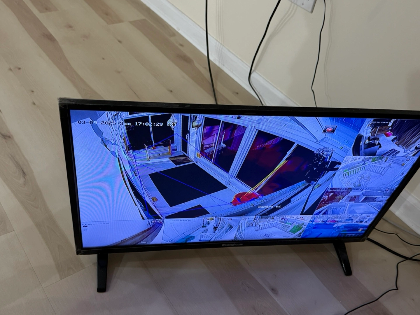 Used security monitor, displays multiple camera feeds simultaneously. Great for home or business security. Includes power cord. Good condition.
