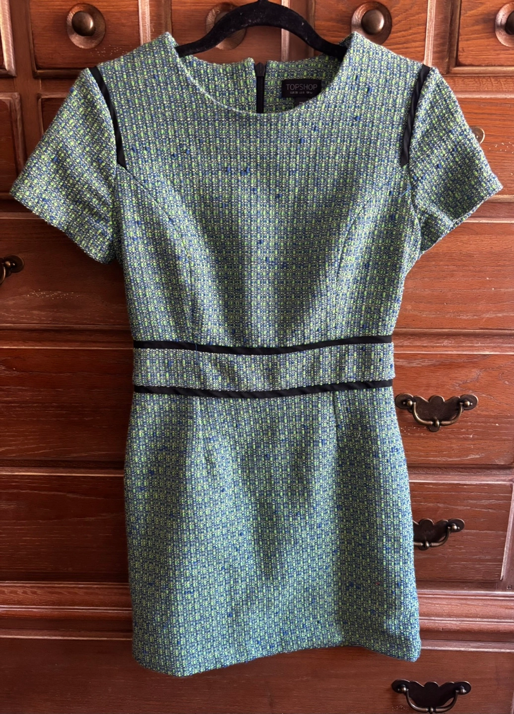 Topshop Green Tweed Shift Dress