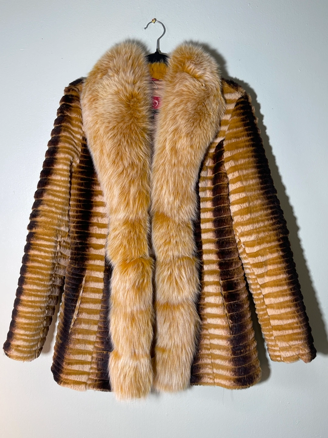 Gorgeous Brown and Beige Fur Jacket with Fox Fur Trim