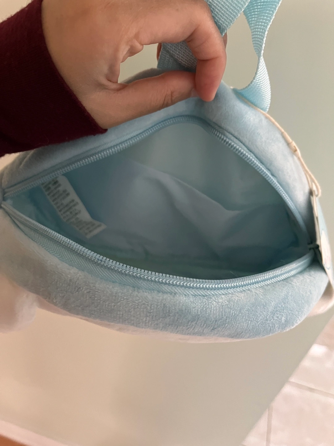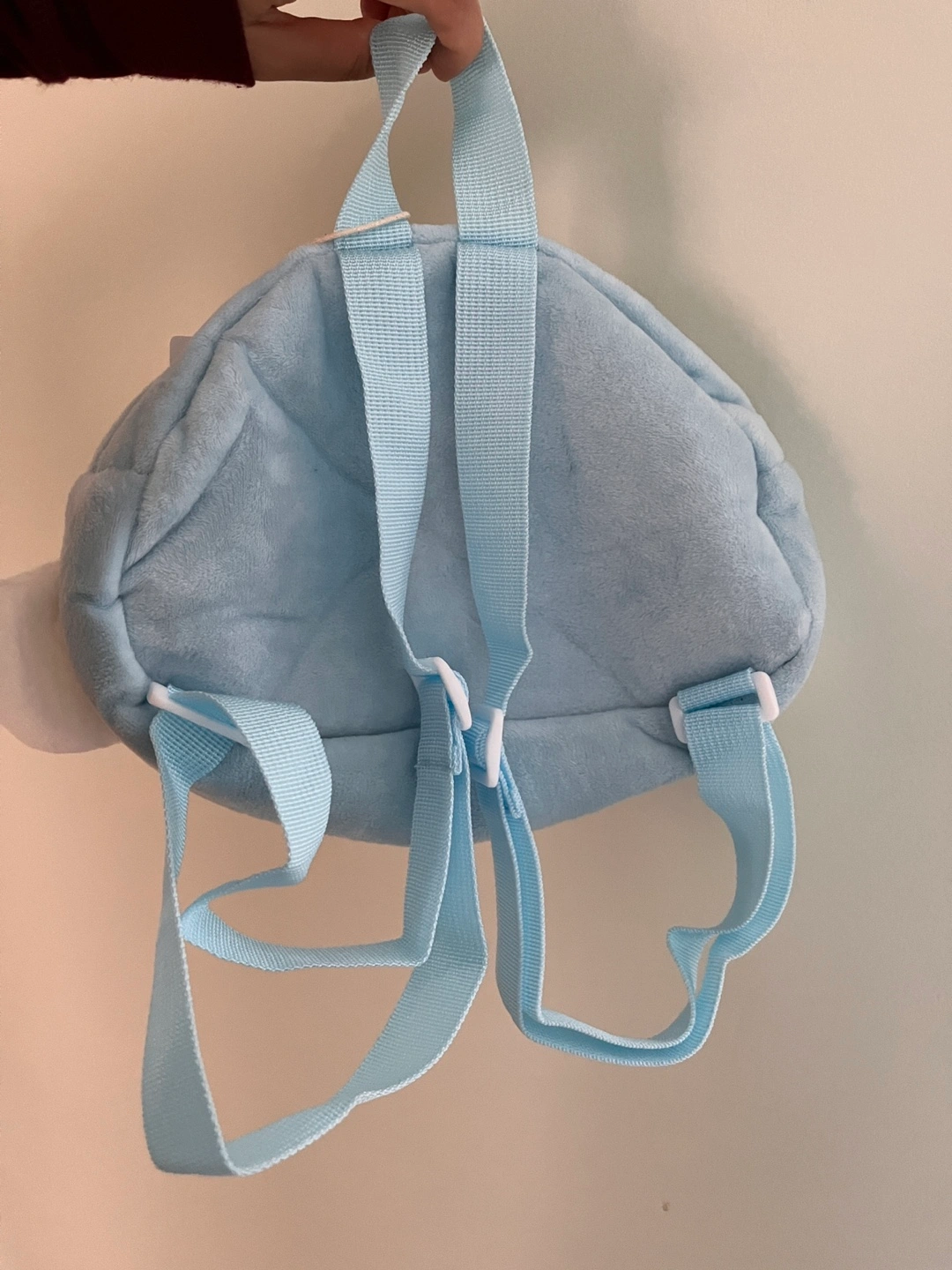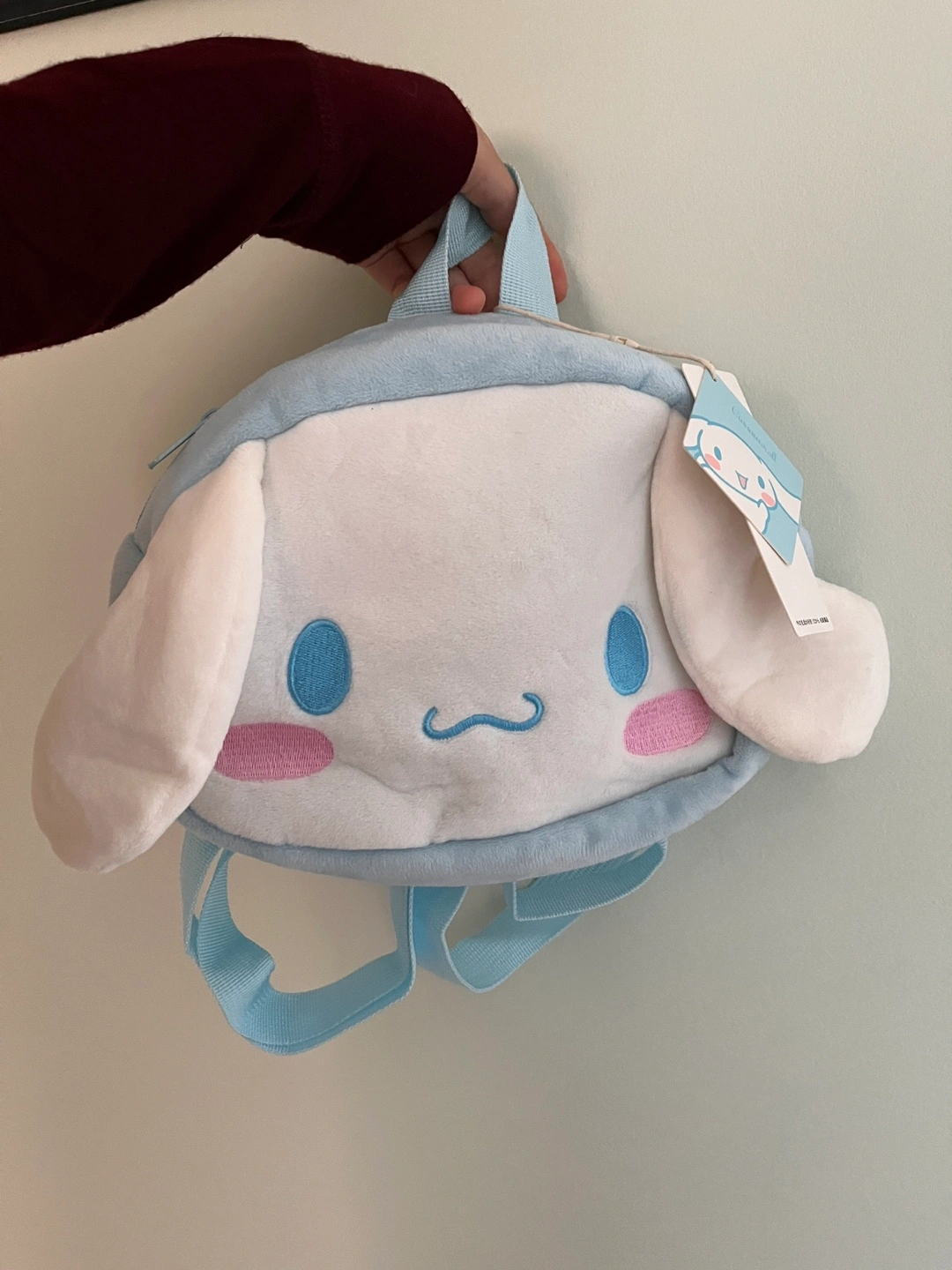 Adorable mini backpack featuring Cinnamoroll. Light blue plush material. Small size, perfect for kids or carrying small essentials. Zip closure, adjustable straps. New with tag.